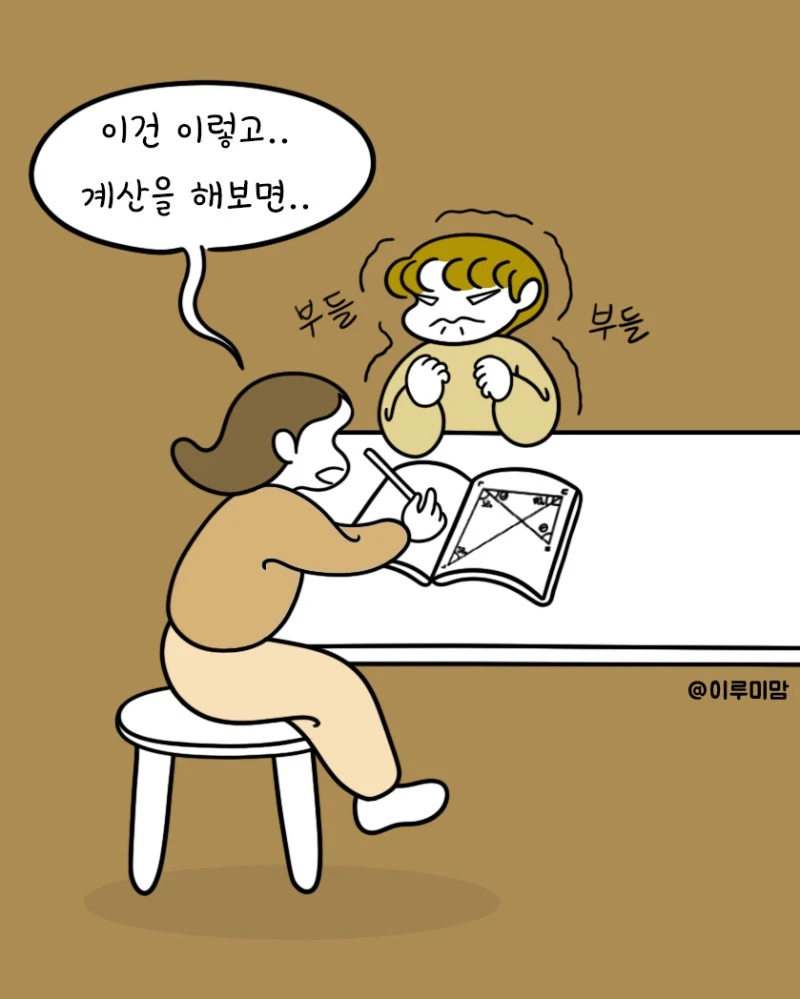 덕분에 아이가 어려운 문제를 접했을 때 화가 나는 이유도 충분히 납득이 되었다. 실제 방정식으로 식을 세워서 풀지 않는다면 원하는 답이 나올 때까지 정해진 범위 안의 많은 수들을 일일이 연산으로 대입해야 하기 때문이다. (평소 엉덩이가 가벼운 아들에게