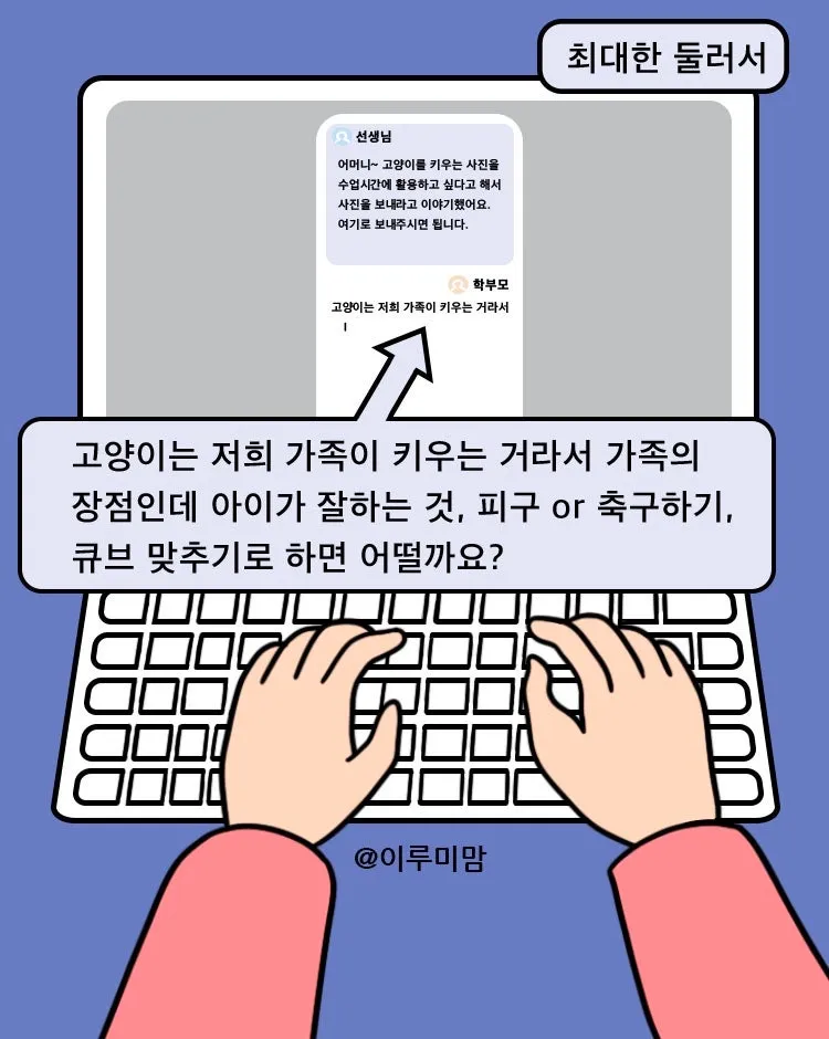 충분히 아이의 사랑스러운 장점이었는데도 그동안 운동, 미술, 과학 등 아이가 잘하는 요소에만 장점으로 집중시켰나 싶다. 동물을 사랑하는 마음도 충분히 장점이 될 수 있다는 담임 선생님의 말씀이 충분히 공감이 갔던 부분이다.
