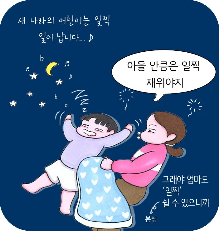 아이 수면 패턴에 맞추어 들어가게 된다.
