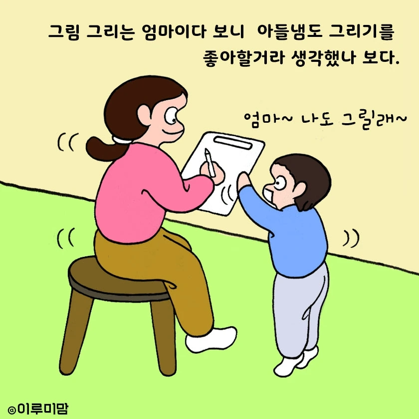 엄마가 되어 아들과 함께 하는 순간들을 틈틈히 에세이툰으로 그리고 있습니다.