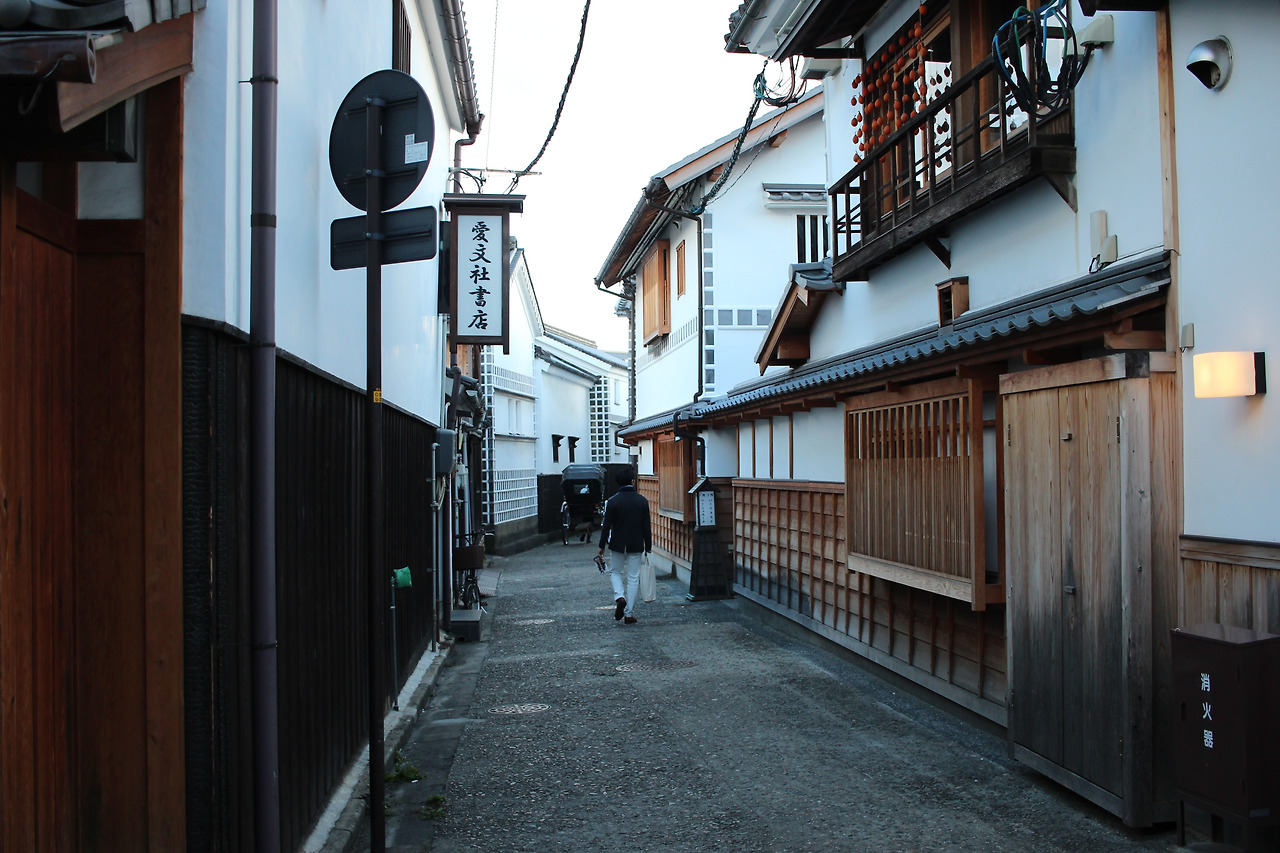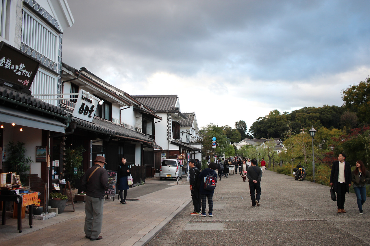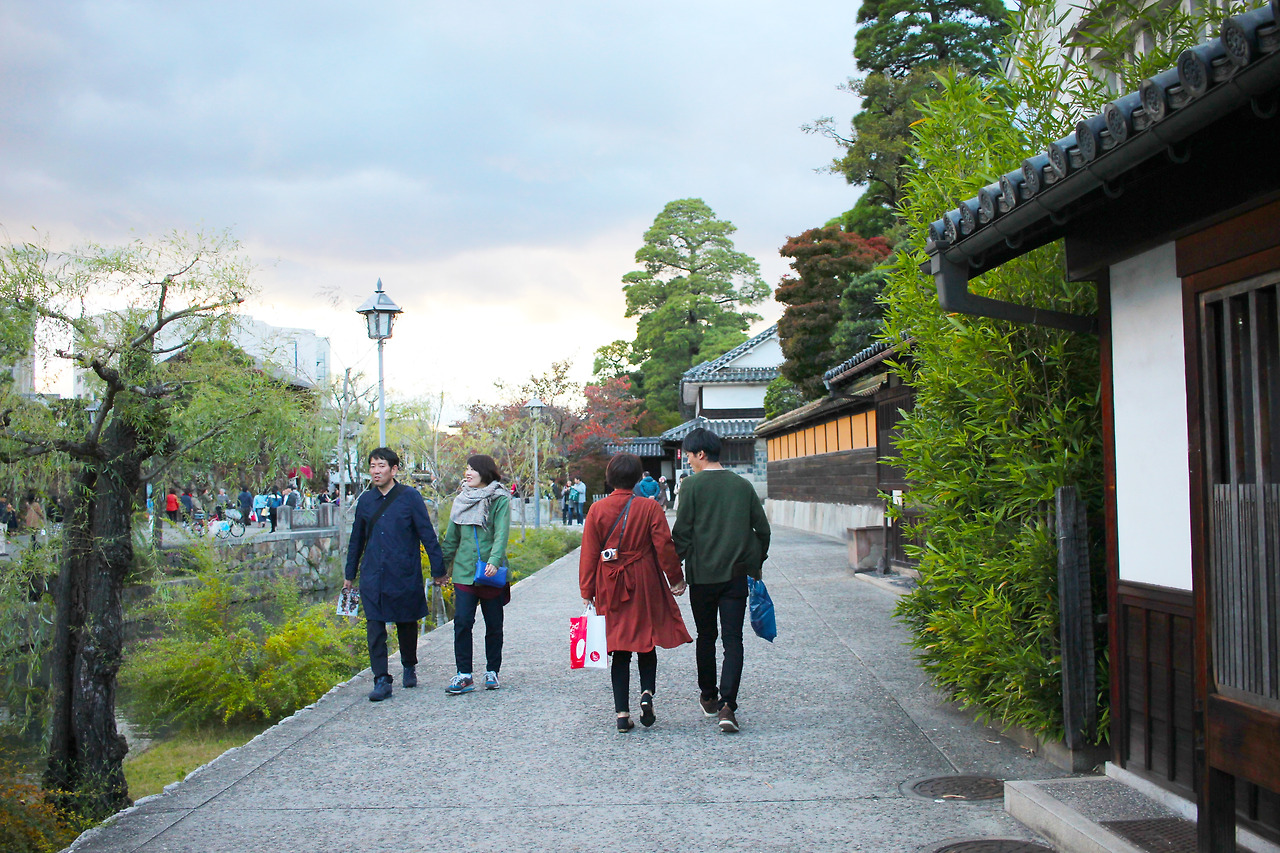 이 곳에서 가장 유명한 관광지인 미관지구는 에도 시대인 1600년대, 물자 수송의 중심지였다. 그로부터 약 400년의 시간이 흐른 오늘날. 시간의 흔적을 간직한 상점들과 그 때나 지금이나 수로를 따라 유유히 흘러가는 물 길을 걷다 보면 시간을 거슬러 온 것 같은 느낌이 든다. 봄에는 벚꽃들이 만개하는데 그 모습은 가을과는 또 다른 감동을 준다고 한다.