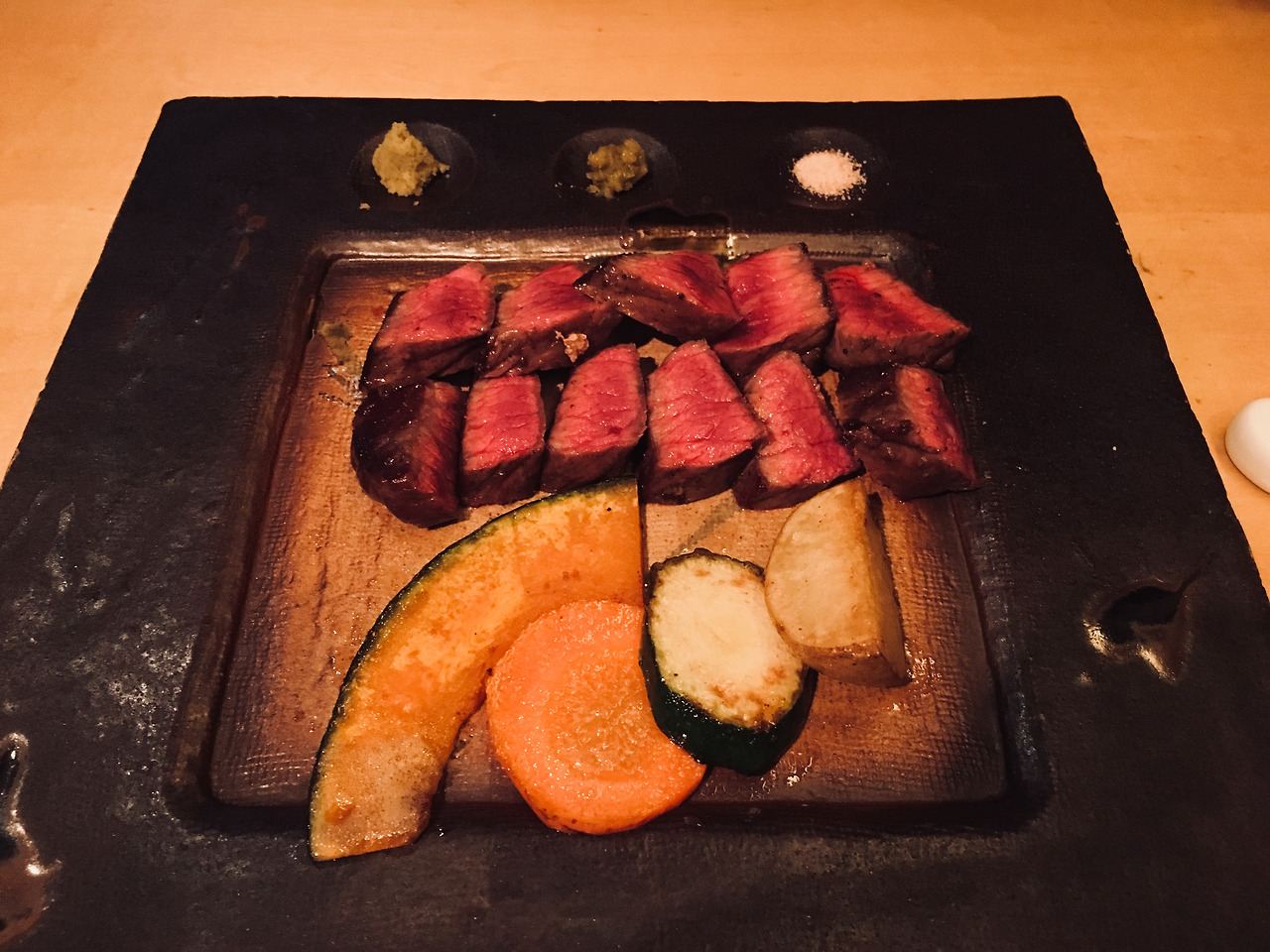 애피타이저-샐러드-해산물 구이-고기(소/돼지 중 택 1)-타코야끼-디저트(케이크/아이스크림 중 택 1) 순으로 음식이 나왔다. 저녁 7시 30분에 들어갔는데 식사를 마칠 무렵의 시간은 9시였다. 다 먹는 데 한 시간 반 정도 걸린 셈이다. 아빠는 이렇게 오랜 시간 동안 밥을 먹은 게 언제인지 모르겠다며 웃었다.