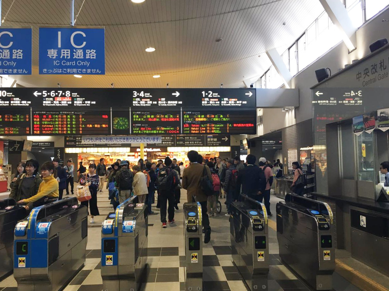 수많은 열차들이 정차하는 역인 만큼 굉장히 복잡하다. 전광판에서 자기가 탈 열차와 플랫폼 숫자를 확인하고 이동해야 한다. (일본 열차 시간표를 확인할 때는 Japan Travel이라는 어플을 사용했다.)