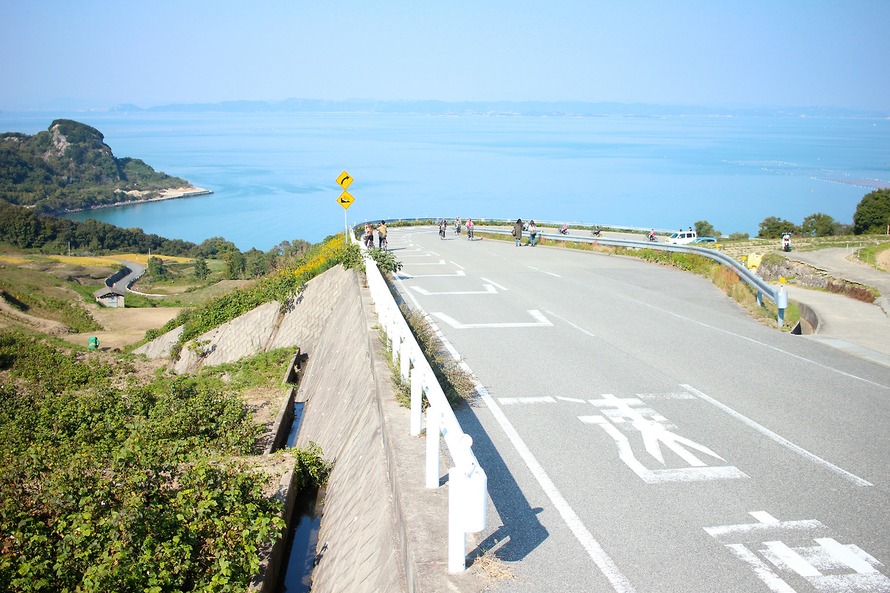미술관도 미술관이지만 주변 경관으로도 유명한 장소다. 계단식 논과 끝없이 펼쳐진 바다가 보이는 길. 이 곳을 자전거로 달리면 얼마나 속이 뻥- 뚫릴까, 기대됐다.