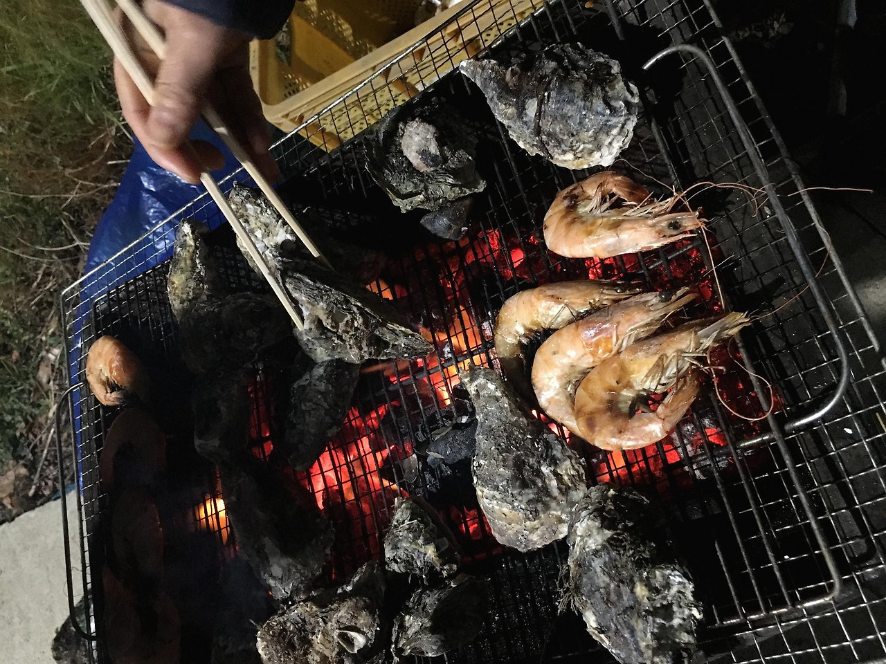 노곤한 하루를 마무리하며 숯불에 석화와 새우를 구워 먹었다. 12월의 첫날이었지만 다행히 견딜만한 추위였다. 쌀쌀한 야외에서 먹는 뜨끈뜨끈한 석화와 새우는 또 다른 별미였다. 그물망을 한 가득 채운 석화구이가 질릴 즈음에는 새참으로 먹었던 수육을 추가해 굴 보쌈을 만들어 먹었다. 쌉쌀한 숯불향 묻어나는 굴과 야들야들한 수육, 갓 담근 김치의 조합은 역시 꿀맛이었다. 우물우물. 먹거리로 양 볼을 가득 채운 행복한 밤이었다.