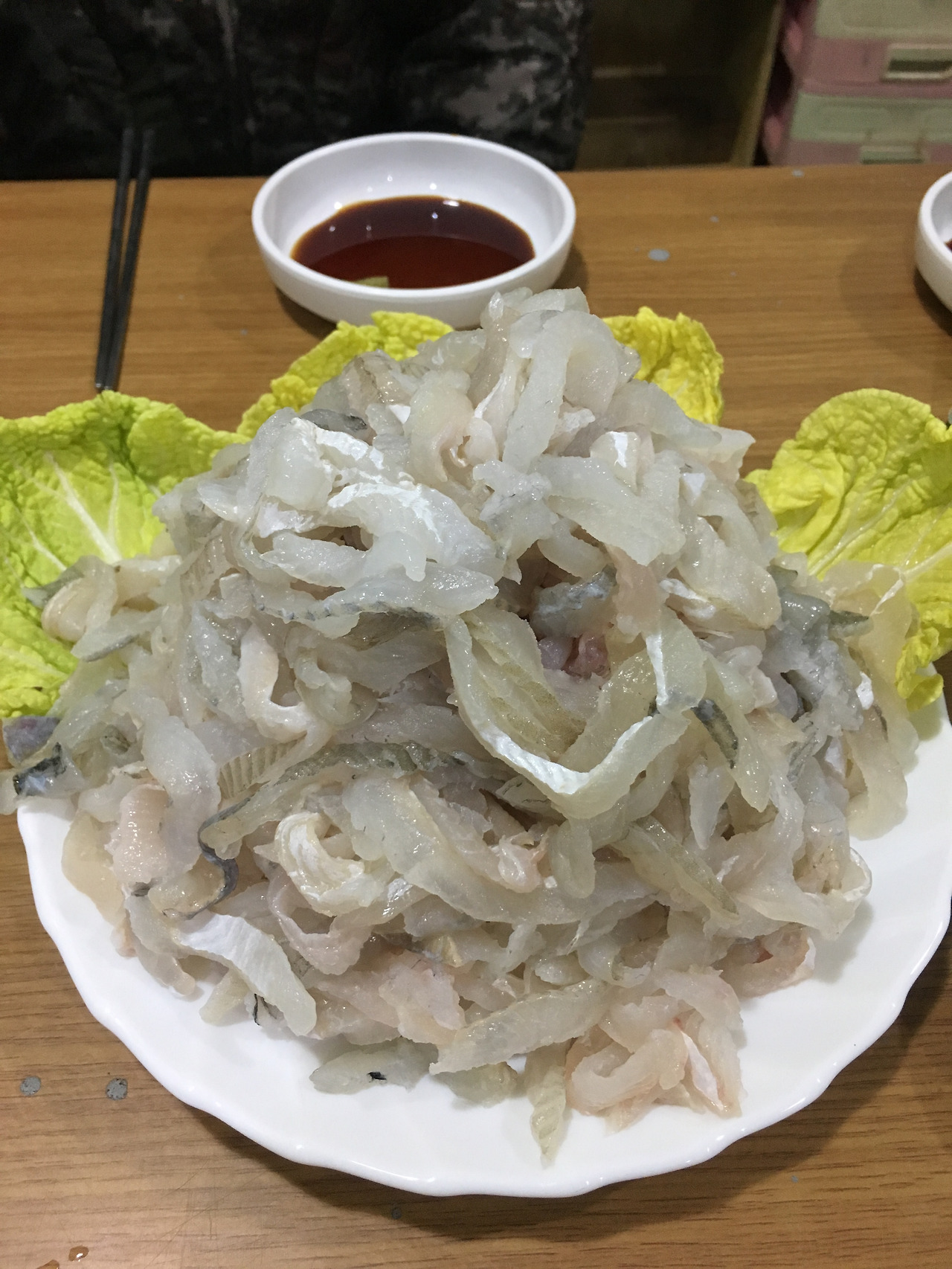 쓰리고 주린 배를 부여잡고 점심쯤 일어났을까. 차려진 점심 상 위에는 회 탑이 쌓여 있었다. 새벽에 울진 앞바다에서 잡아 갓 떠서 배송된 그야말로 산지직송 회. 아무리 먹어도 높이가 줄어들지 않는 신기한 탑을 한 움큼 떠서 먹었다. 입 안 가득 바다향이 퍼졌다.