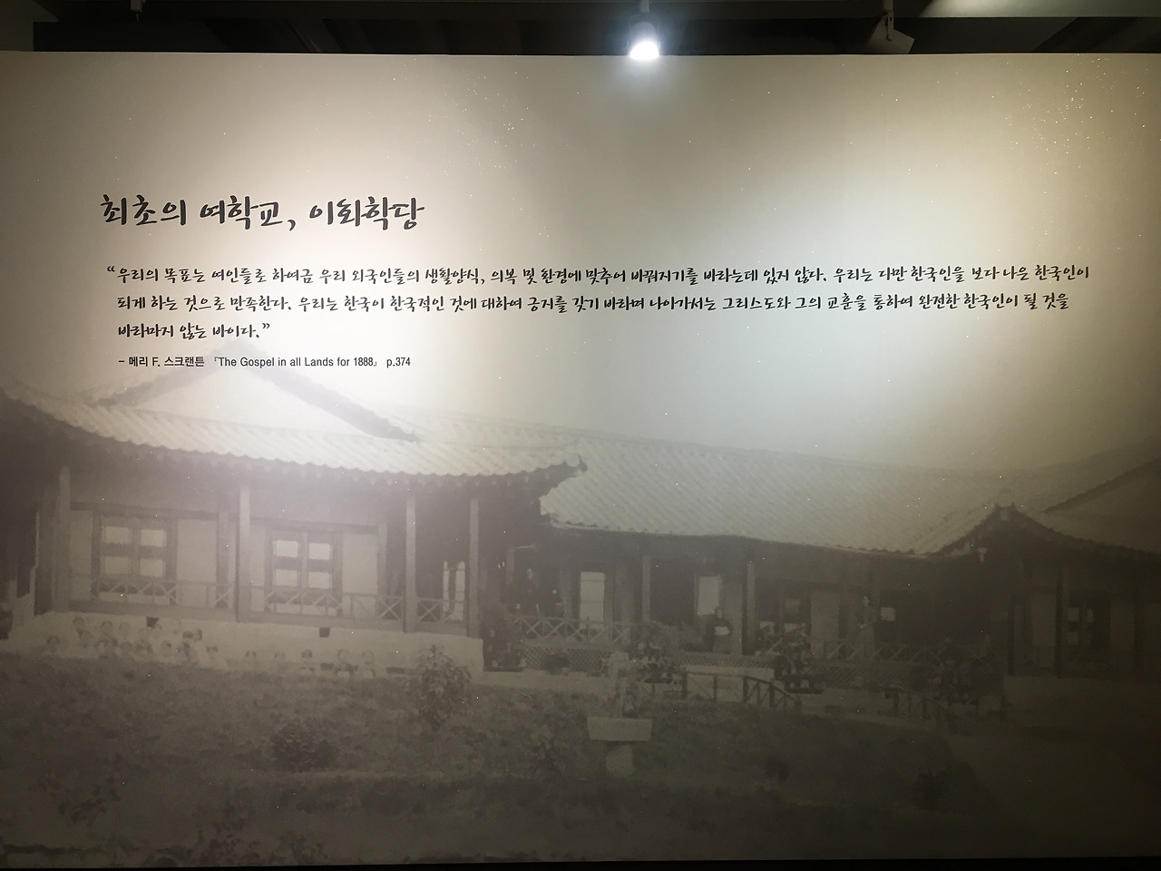 이화학당은 미국 선교사 메리 스크랜턴에 의해 설립된 여학교로, 1886년 개교 당시에는 한식 기와집을 교실로 사용했다.