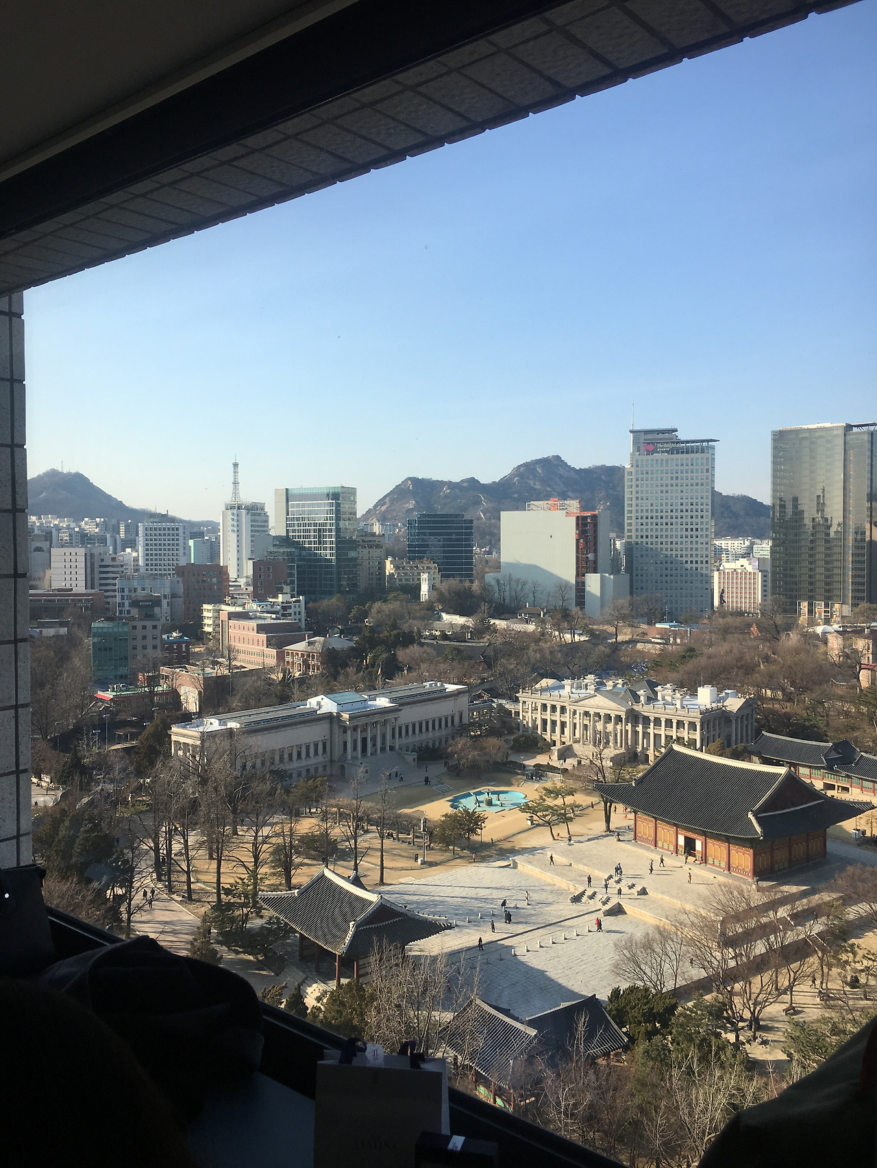 다음으로 찾은 곳은 카페 다락. 서울특별시청 서소문별관 13층에 위치한 정동 전망대다. 이곳에 올라가면 덕수궁과 정동길의 모습을 한눈에 담을 수 있다 했다. 생각보다는 사람이 많아서 구경만 하고 바로 내려왔지만, 사람 없는 평일 낮이라면 사색에 잠기기 좋은 곳이었다.