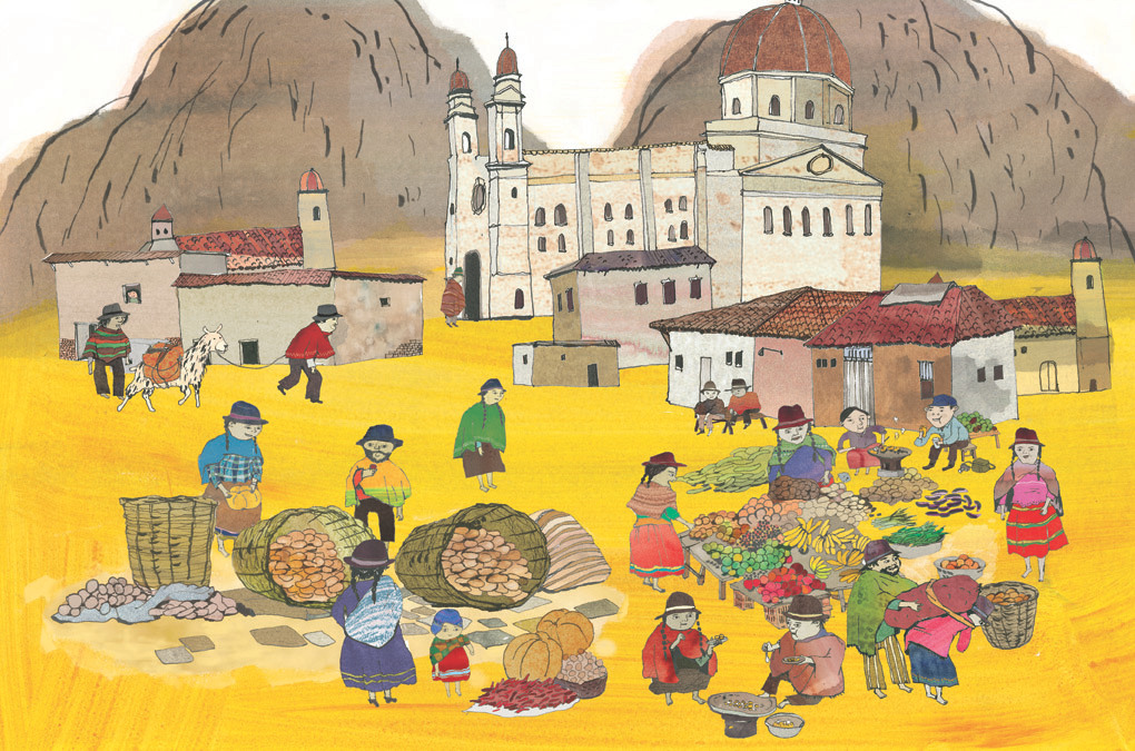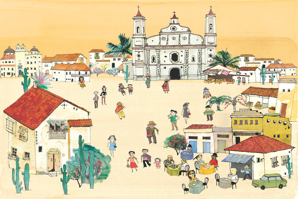역시 남미의 한 도시의 광장이다. 이후에 이 그림을 보고 다른 출판사의 일을 받은 적이 있었지. 남미는 유럽의 식민지가 되면서 유럽식 성당과 건축물이 굉장히 많다고 한다. 광장의 중심에 자리한 성당이 보기 좋았다. 광장을 그리는 일은 재미있다. 어떻게 그려도 그림이 될 만한 소재가 많다.
