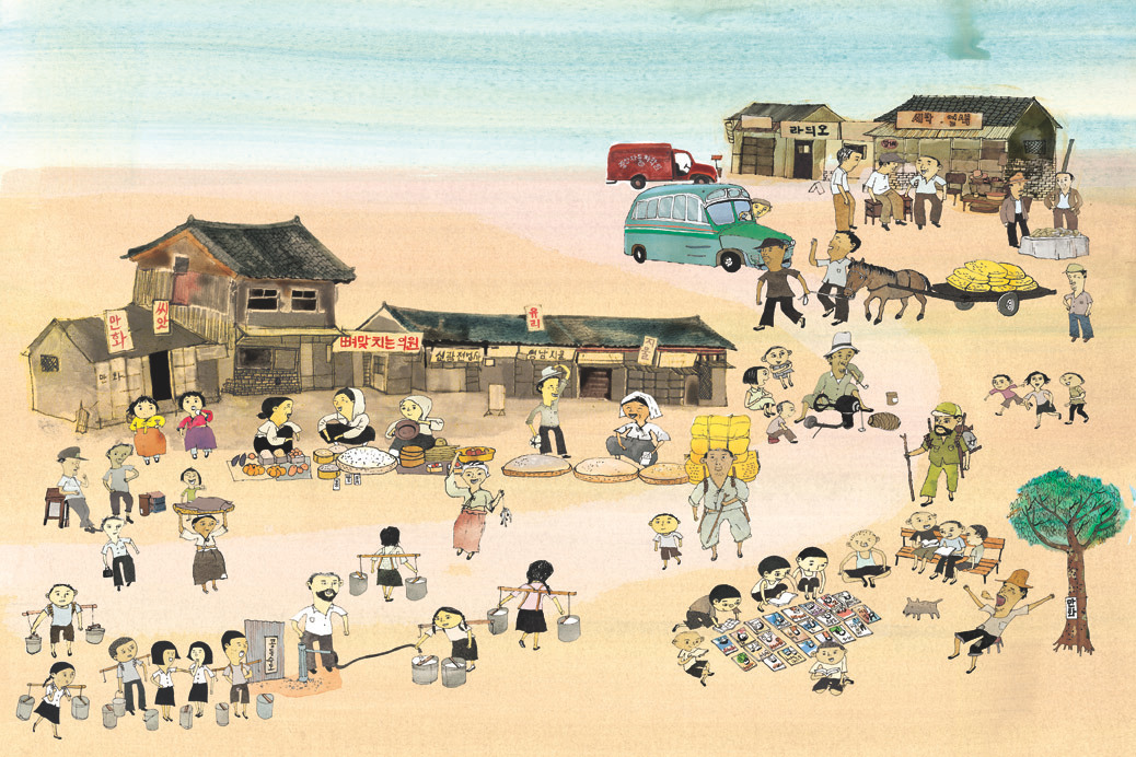 김찬삼에 관련된 1950년대의 시대 풍경을 느낄 수 있는 자료를 받았고 나도 여기저기 뒤지며 찾았다. 가능한 당시의 거리나 사람들의 느낌이 나올 수 있게 하려고 했다. 식민지의 잔재와 전쟁의 상흔이 남아있던 인천의 거리, 그곳에 살던 가난한 사람들의 풍경을 그리려고 했다. 물론 아주 잘 되진 않았지만 그리는 동안 나쁘지 않았다.