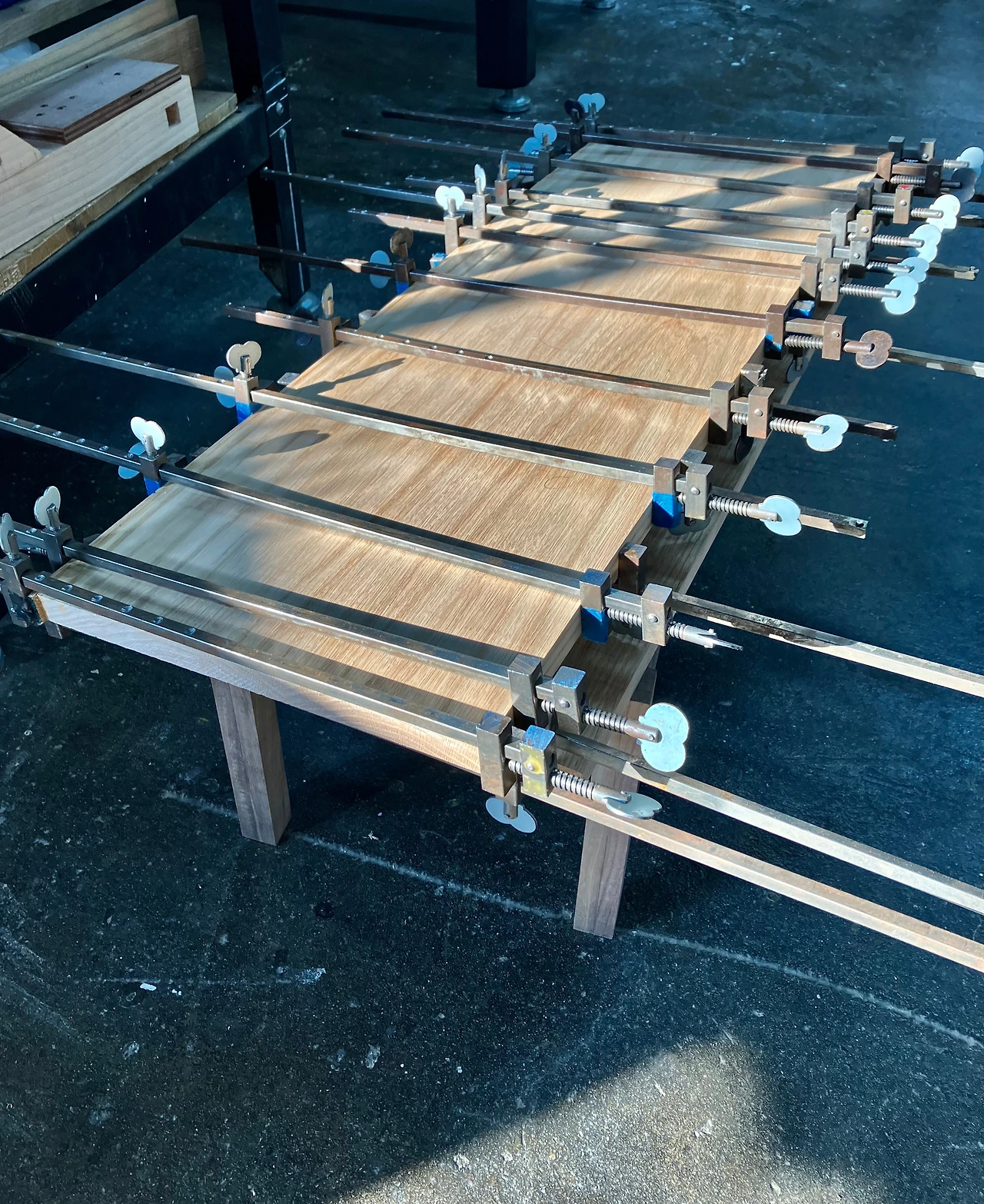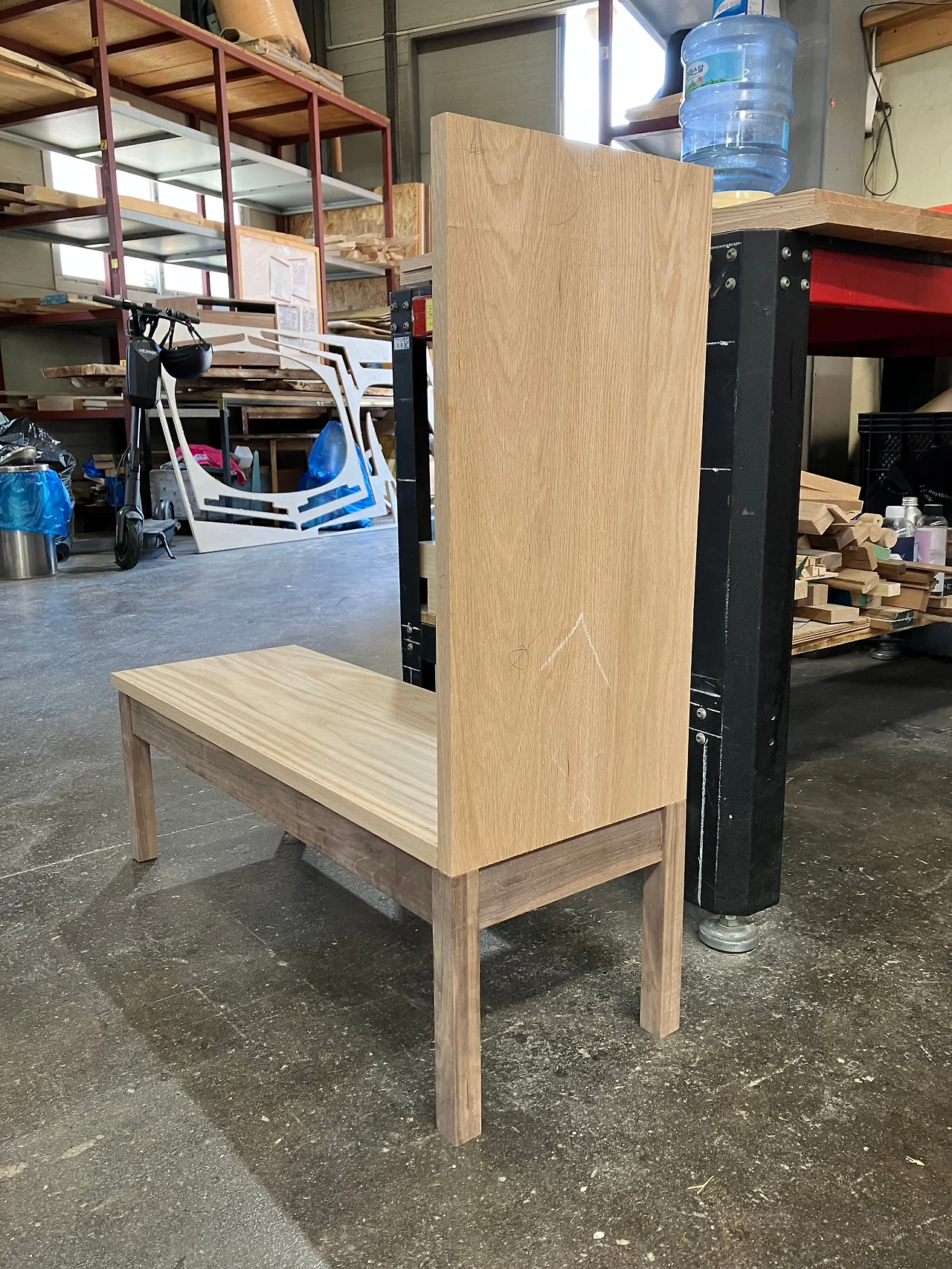 수업 재료로 받은 나무는 이미 다 써버렸고 그마저도 다리와 장이 어울리지 않아 다시 만들기로 결정했다. 다리는 월넛으로 하고 장은 레드오크로 만들려는 계획이었는데 완성된 다리 위에 레드오크로 만들고 있는 장을 올려서 살폈다. 두 부분의 색과 질감이 어울리지 않는다. 머릿속에서는 노란색이 도는 레드 오크의 질감과 짙은 브라운 색이 괜찮을 것 같았는데 뭔가 이질적이다. 따로 논다고 해야 하나? 어제저녁에도 고민하고 아침에 차 타고 출근하면서도 생각했다. 어울리는가 아닌가의 판단은 거의 3초 안에 끝난다. 아니다 싶은 것을 붙들고 있어 봤자 결국엔 아쉬워진다. 딱 맞는 만족감에 도달하는 경험이 이런 일의 매력이다. 적당히 하는 것도 필요하지만 바라는 어떤 지점에 정확히 꽂히는 경험도 중요하다.