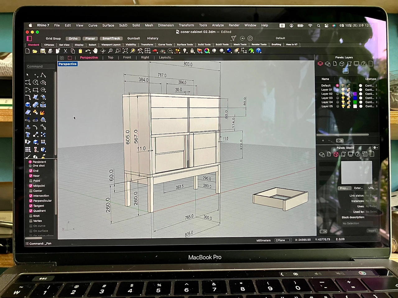 폭이 340이냐, 370이냐, 400이냐? 높이는 640으로 할까 750으로 할까? 아니면 900? 최종 높이를 840 정도로 잡았다. 사실 이것도 얼마든지 변할 수 있지만 대략 이 정도 선에서 결정하자. 고민이 길면 일하는 시간만 촉박해진다. 서랍의 크기는 어떻게 하고 문은 어떤 방식으로 할까? 생활에서는 잘 보이지 않던 디테일들이 만드는 과정에서는 뒷덜미를 잡아끈다.