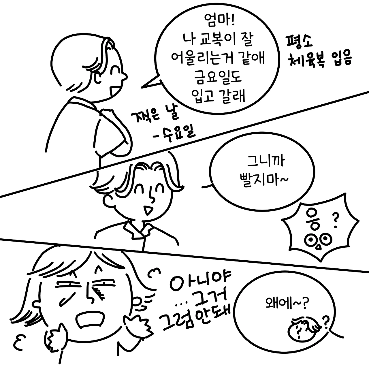 체육복을 두 벌 사란걸 도무지 이해하지 못했는데,