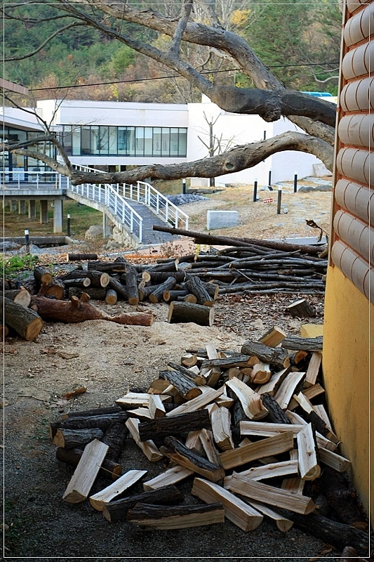 나무 하러 가는 곳은 펜션 맞은편 임도가 끝나는 곳이다. 약 3km 거리로 4륜 구동 아니면 갈 수 없는, 길이 아주 험해서 차가 있는 나 아니면 가기 힘들다. 가까운 곳에도 있지만 아무래도 마을 어르신들 눈치가 보여서. 대신, 곱게 물든 낙엽송이 길을 열어 놓고 기다리는 근사한 곳이다. 뒷집 어르신은 지게로 나무를 해오시기 때문에 마을에서 가장 젊은 내가 먼 곳에서 해 올 수밖에 없다. 이제 가장 먼 골짜기는 자연스럽게 나의 전용 나무터가 되었다.