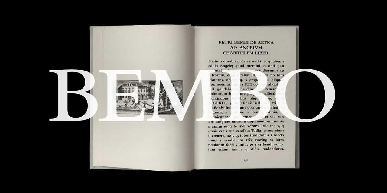 벰보(Bembo)는 1928-1929년 Monotype Corporation의 영국 지사에서 만든 세리프 서체로 본문 텍스트에 가장 일반적으로 사용됩니다. Monotype 은 Monotype 경영자이자 인쇄 역사가인 Stanley Morison의 영향으로 이탈리아 르네상스 인쇄에 대한 새로운 관심이 집중되던 시기에 만들어졌습니다. 벰보는 창간 이후로 매력적이고 읽기 쉬운 책 서체로 계속 인기를 얻었습니다.