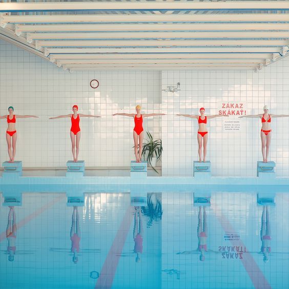 (수영하는 여인 그래픽은 Maria Svarbova의 사진작품에서 모티브를 얻은 것 같습니다)