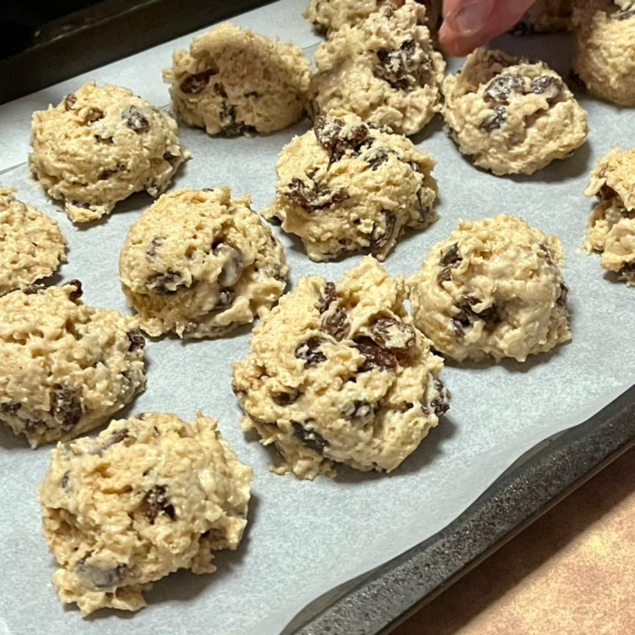 락 케이크도 마찬가지. 대충 빡빡 되직한 반죽을 만들고 건포도(sultanas) 넣어서 아이스크림 스쿱으로 뜨면 끝.