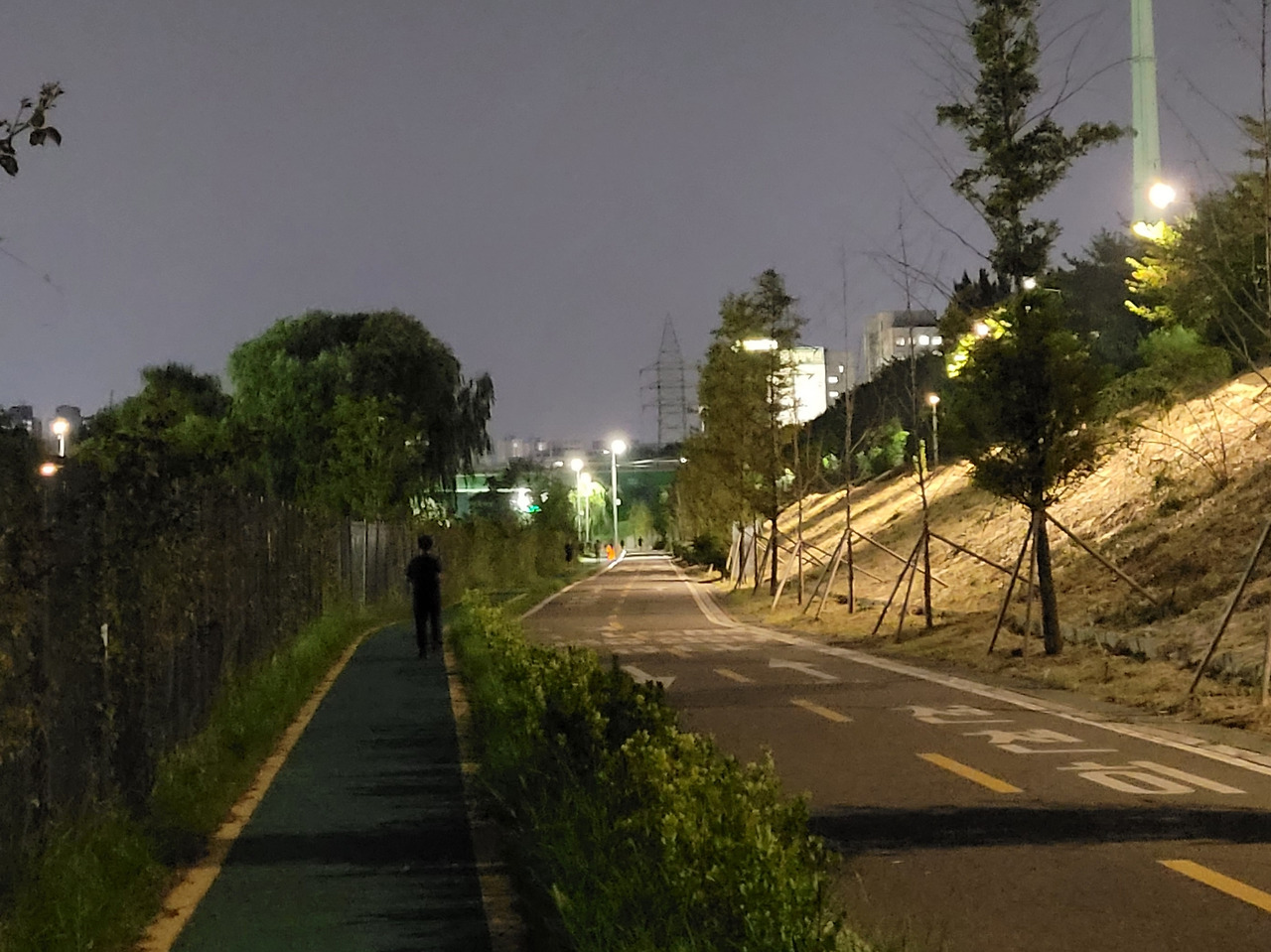 이곳에는 간판이 없거나, 불가피하게 필요하더라도 작은 나무 간판으로, 또는 어둡게 칠한 세로형 금속판에 흰 글씨로 지나가는 사람이 보려고 하면 보이는 정도로 표현했어도 충분했을 것이다. 주변 녹지 환경에 일관되게 녹아들도록 하면 사용자는 휴식에 집중할 수 있다.