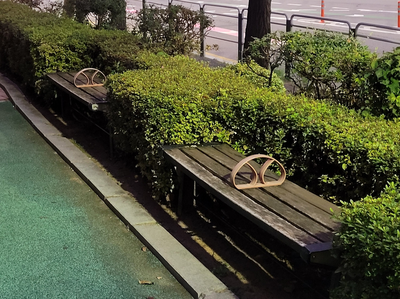 알아보니 벤치 가운데에 굳이 손잡이를 붙인 이유는 사용자의 노숙 행위를 방지하기 위해서라고 한다. 내내 손잡이라고 생각했던 장치는 손잡이가 아니라 칸막이었다.