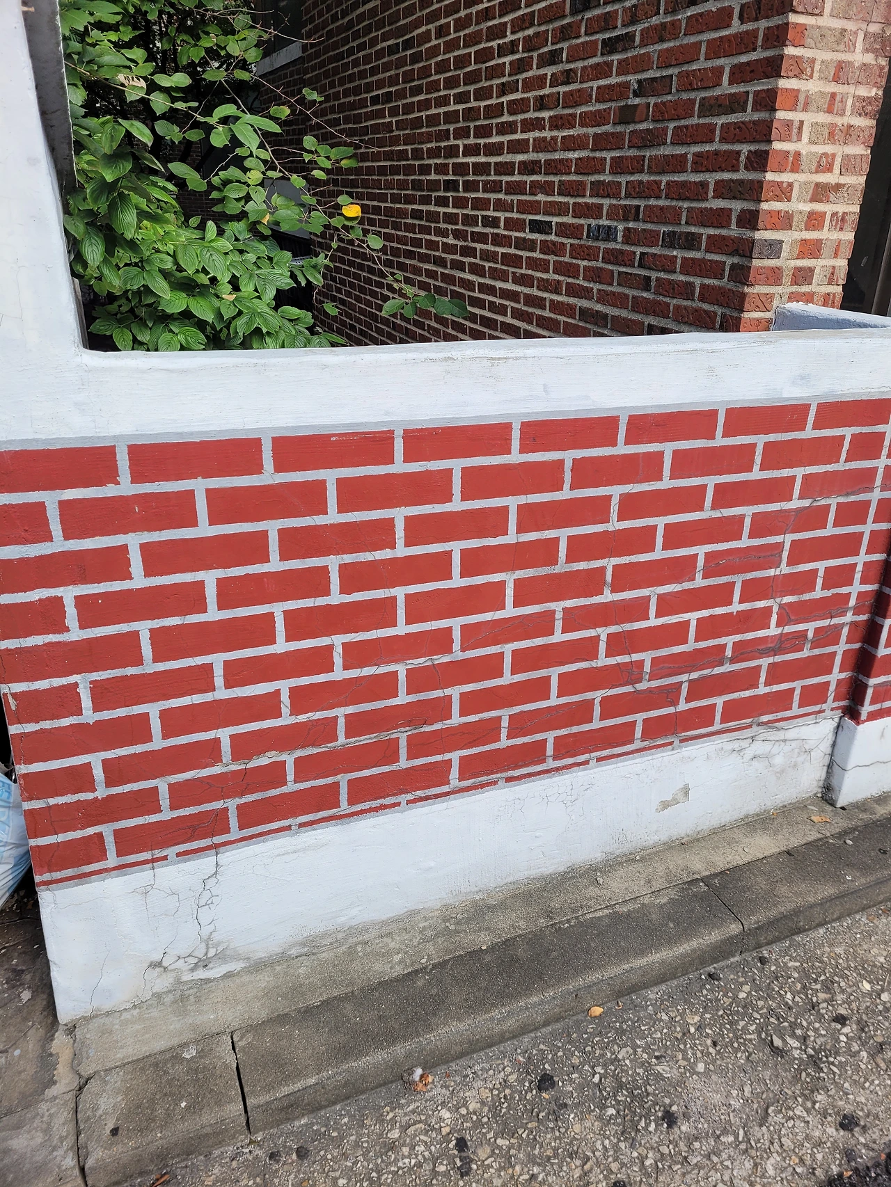 골목길을 지나가는데 어딘가 이상한 구석이 있는 담벼락을 마주했다. 벽돌로 쌓은 담이었는데 멀리서 보니 묘하게 이질감이 든달까? 가까이 다가가니 벽돌로 만들어진 담이 아니라 벽돌 그림이 그려진 담이었다.