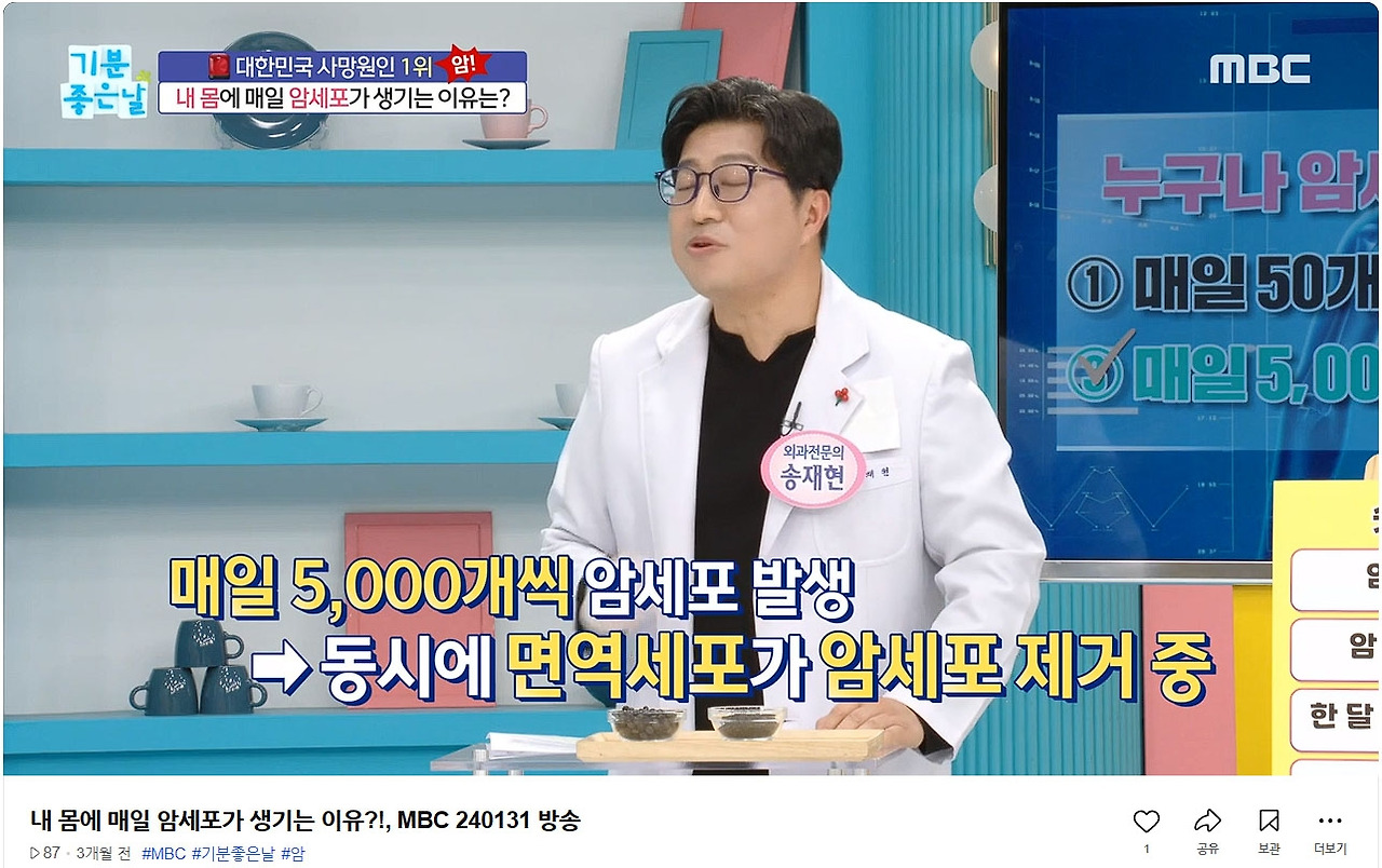 우리의 몸엔 매일 암세포가 2000~5000개가 자라고 우리의 면역체계는 매일같이 암과 사투를 벌입니다. 나는 아무것도 하지 않고 숨만 쉬며 하루를 보냈다고 해도 내 몸 안에서는 세포들 간 치열한 싸움이 매일같이 일어납니다. 대부분의 암세포는 건강한 세포에 의해서 사멸되지만 면역력이 약해져 암세포와의 싸움에서 패 하였을 때 문제가 발생됩니다.