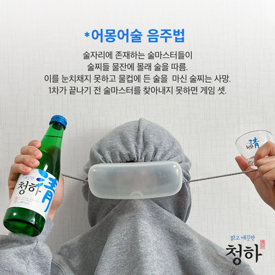 또 최근 열풍이 불고 있는 게임, 어몽어스를 차용하여 청하는 '어몽어술' 이라는 술게임도 만들어냈다. 온라인에서만 즐기던 게임이 청하로 인해 지인들과의 술자리에서도 즐길 수 있게 됐다.