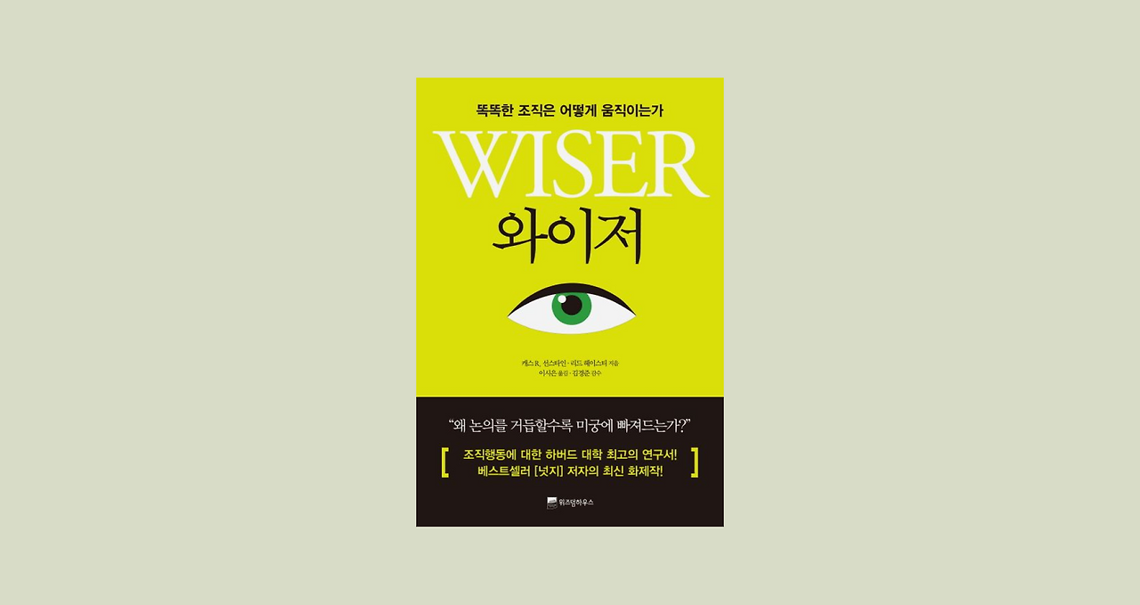 이 책은 직접적으로 조직문화에 대해서 얘기하고 있지는 않습니다. 하지만 기업의 커뮤니케이션에 필요한 중요한 내용들을 잘 담고 있습니다. 이 책의 저자는 우리에게 많이 알려진 <넛지>를 쓴 행동경제학 전문가 캐스 선스타인으로, 책의 내용은 집단이 어째서 잘못된 판단과 실수를 내리는지, 정확히는 집단이 오히려 오류를 확대하게 되는 이유에 대해 담고 있습니다.