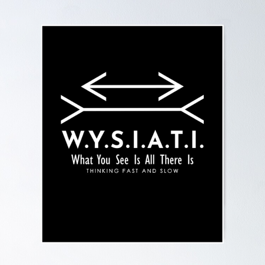 행동경제학의 창시자이자 <Thinking Fast and Slow>의 저자인 다니엘 커너먼은 이를 'WYSIATI(What You See Is All There Is)'이라고 말합니다. 해석하면 '당신이 보는 것이 전부다'라는 뜻으로 사람들이 쉽게 얻을 수 있는 정보에만 근거하여 판단과 결정을 내리고, 즉시 존재하지 않는 정보는 무시하거나 과소평가하는 경향이 있는 인지 편향을 말합니다.