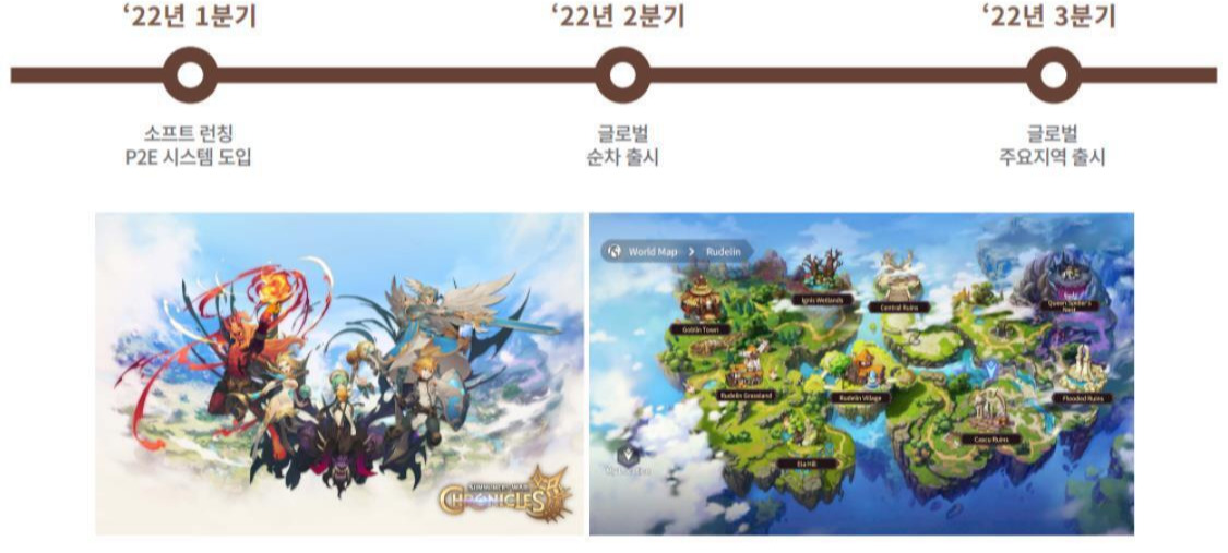 컴투스의 대표 차기작인 ‘서머너즈 워: 크로니클’을 P2E 버전으로 전환해 올해 3월 소프트 론칭하기로 했다. 컴투스 홀딩스의 신작 ‘크로메티 소울: AFK 레이드’도 지난해 연말 출시에서 일정을 미루고 P2E 버전으로 재구성했다. 컴투스 그룹이 준비한 P2E 게임이 열 개가 넘는다.