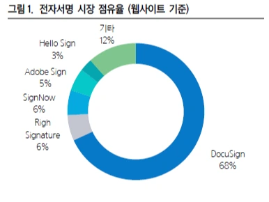 100만 개가 넘는 고객 기관의 수에서부터 알 수 있듯이, 약 70%란 압도적 시장 점유율을 가진 도큐사인은 이미 전자서명 자체라고 볼 수 있을 만큼 시장 지배적인 위치에 자리하고 있다. 게다가 언택트 · 코로나의 장기화로 인한 디지털 트랜스포메이션(DT)과 클라우드 시대의 한 발 앞선 도래로 성장에 탄력을 받기까지 해 트렌트의 중심에 선 회사가 되었다.