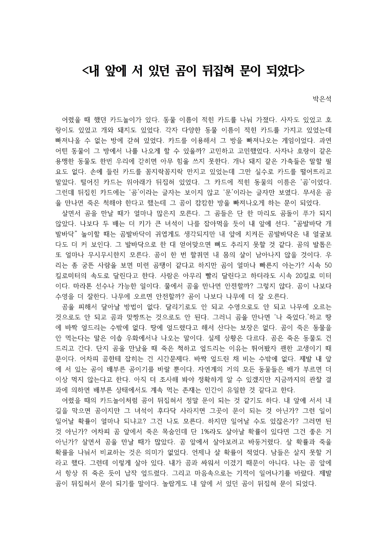 그 카드에 적힌 동물의 이름은 ‘곰’이었다.