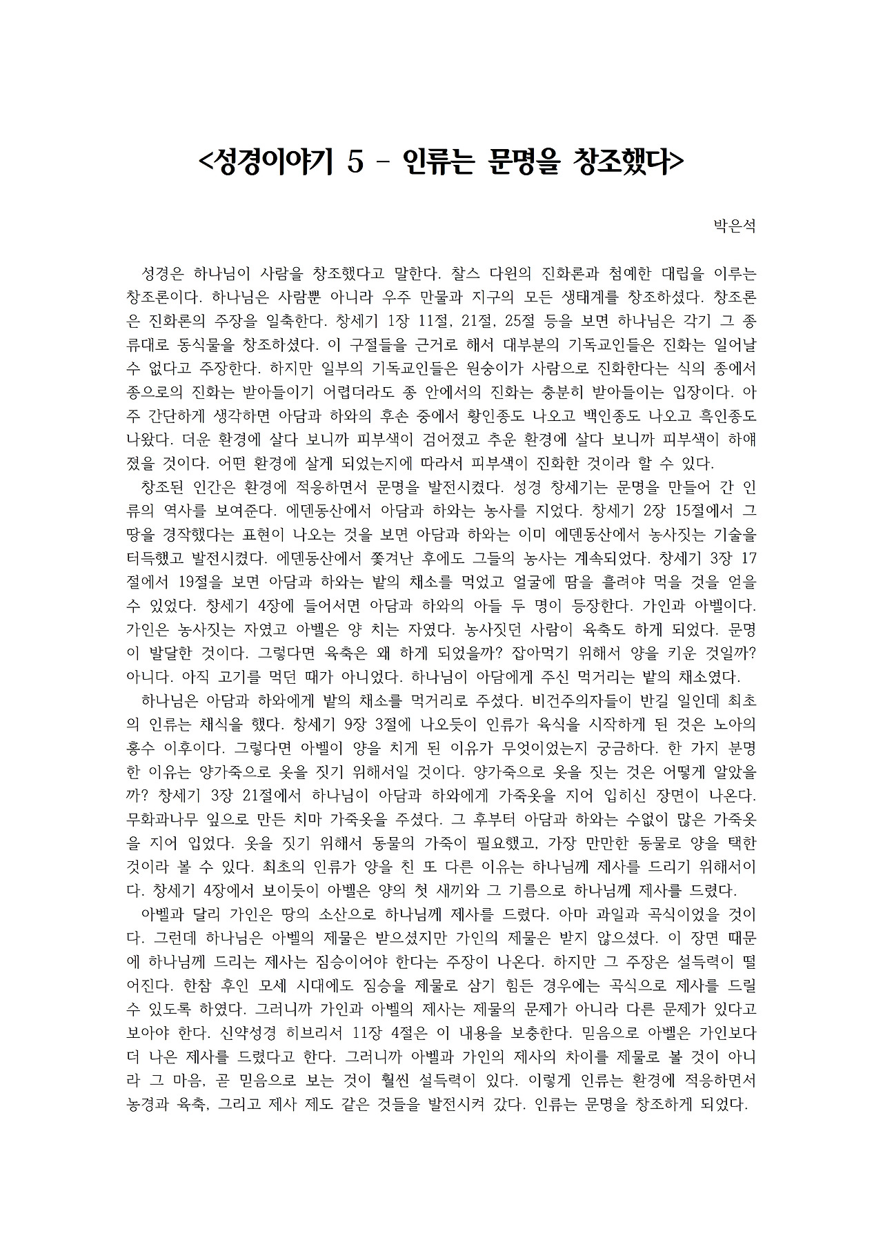 인문학적 생각으로 보는 성경이야기