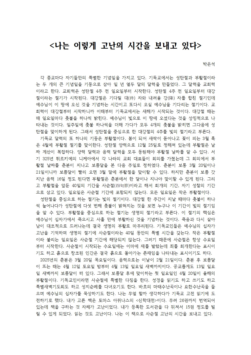 나는 이 책으로 사순절 고난의 시간을 보내고 있다.