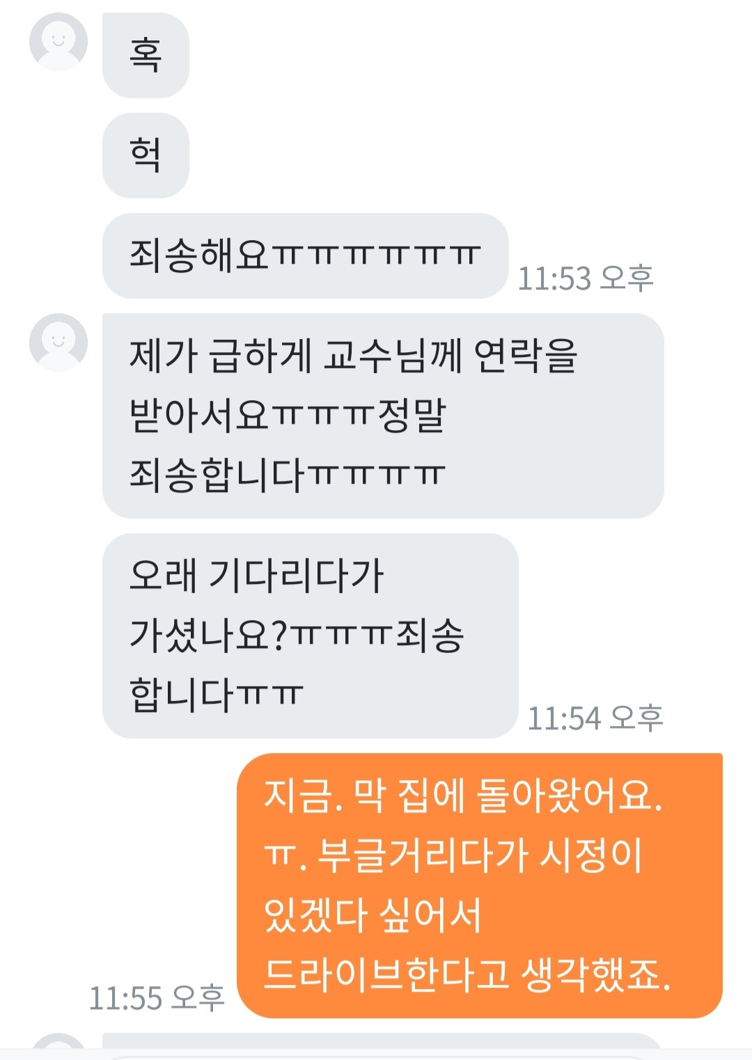 부랴부랴 출발하면서 30분 걸린다고 메시지를 보냈다.