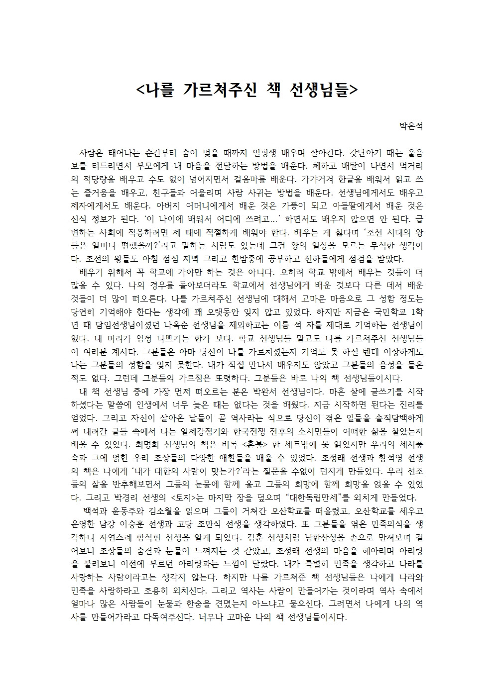 하지만 나를 가르쳐준 책 선생님들은 나에게 나라와 민족을 사랑하라고 조용히 외치신다.