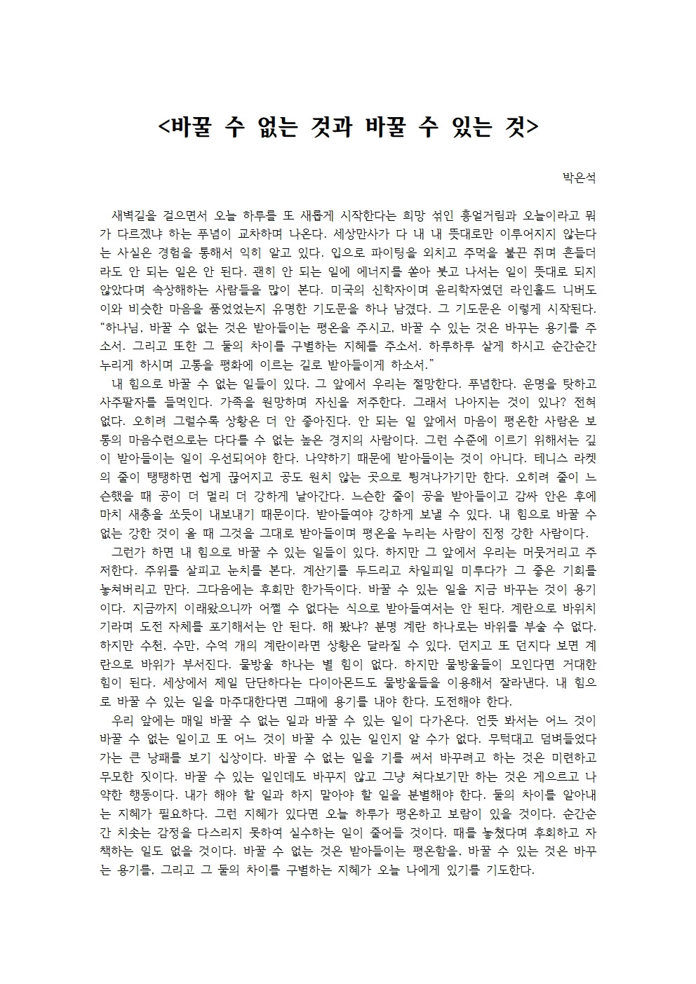 우리 앞에는 매일 바꿀 수 없는 일과 바꿀 수 있는 일이 다가온다