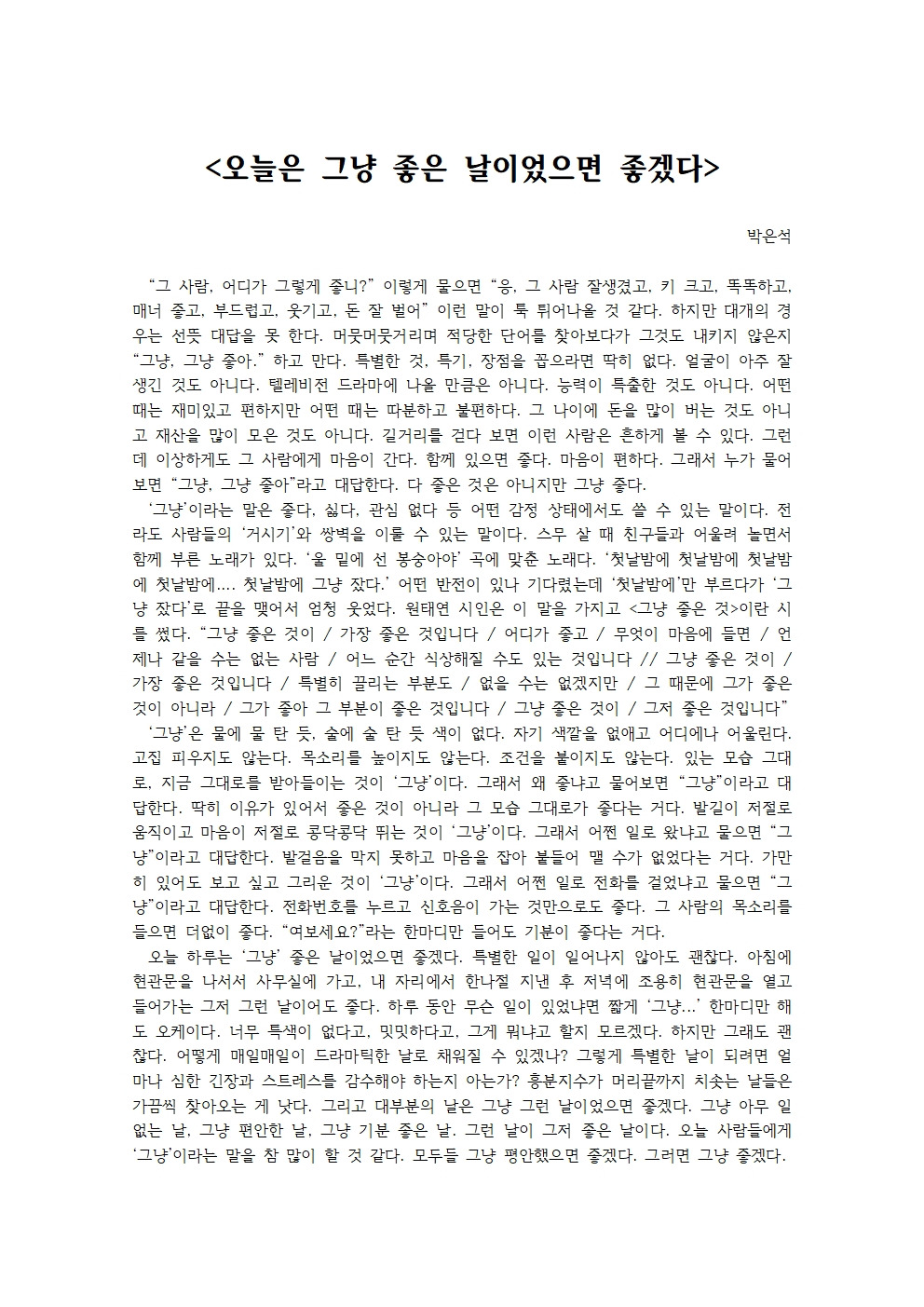 오늘 하루는 ‘그냥’ 좋은 날이었으면 좋겠다.