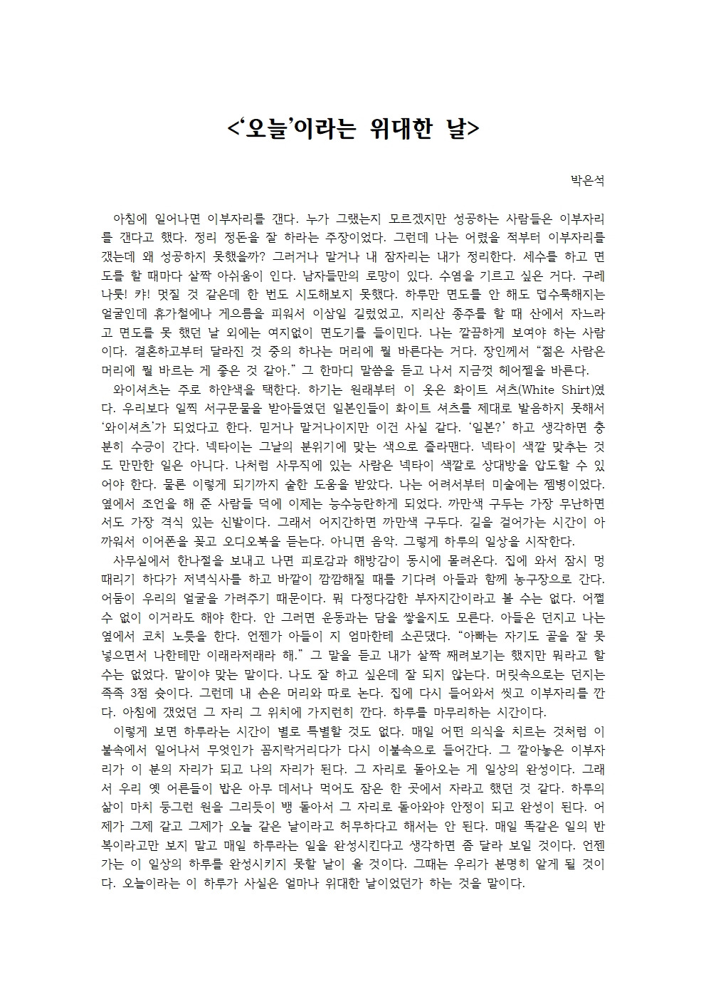오늘이라는 이 하루가 사실은 얼마나 위대한 날이었던가 하는 것을 말이다.