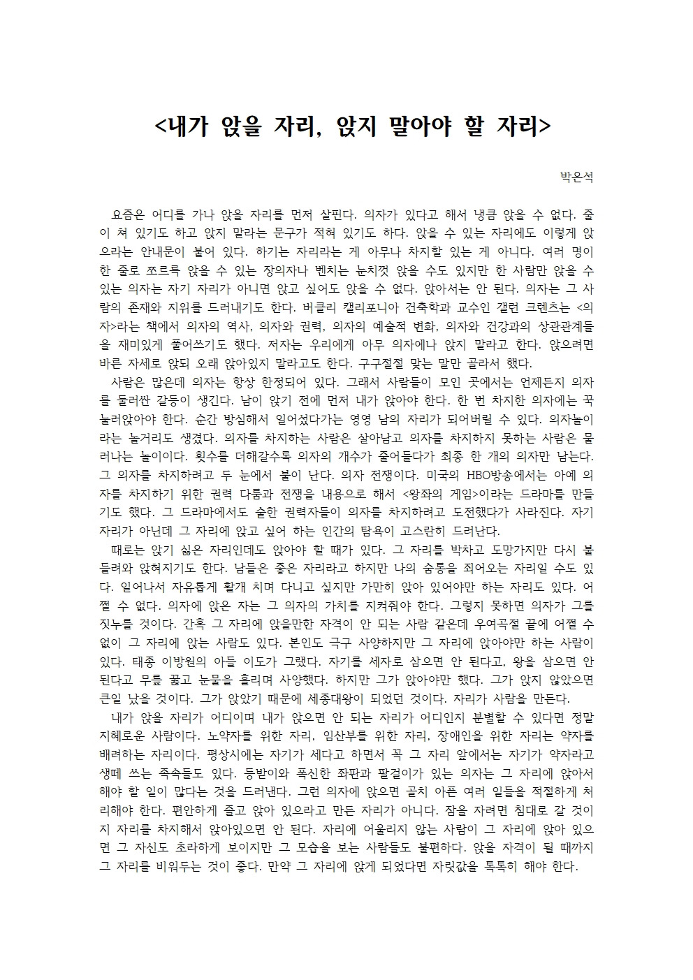 내가 앉을 자리가 어디이며 내가 앉으면 안 되는 자리가 어디인지 분별할 수 있다면 정말 지혜로운 사람이다.