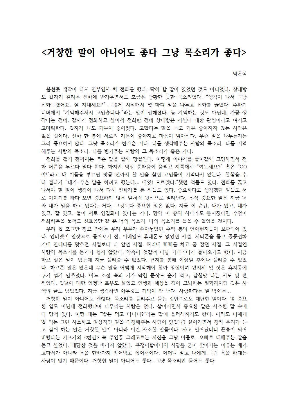 나를 생각해주는 사람의 목소리, 나를 기억해주는 사람의 목소리, 나를 반겨주는 사람의 그 목소리가 좋은 거다.