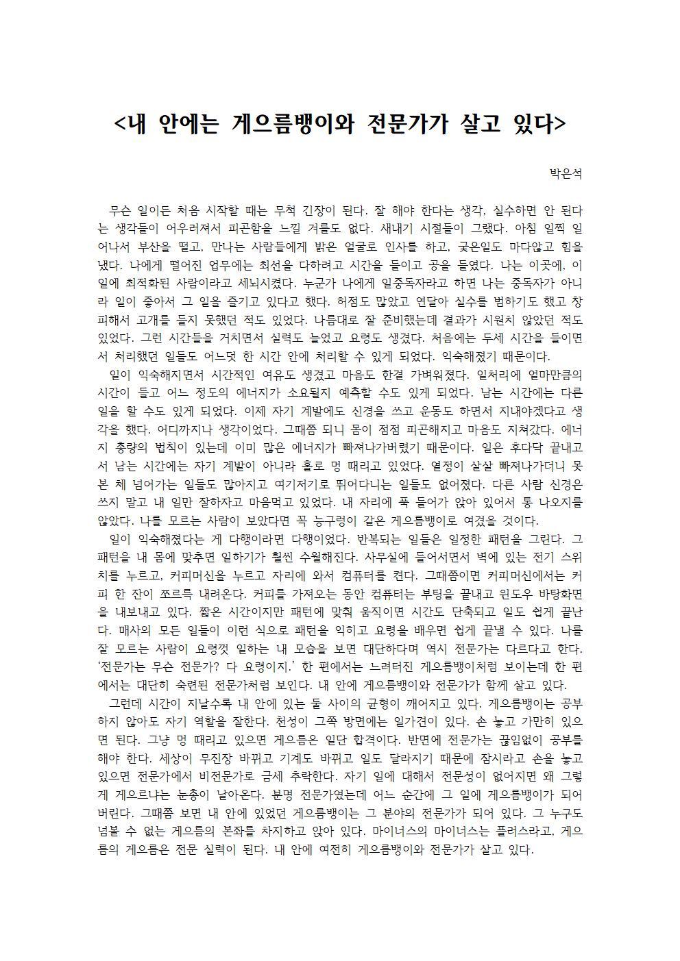내 안에 게으름뱅이와 전문가가 함께 살고 있다.