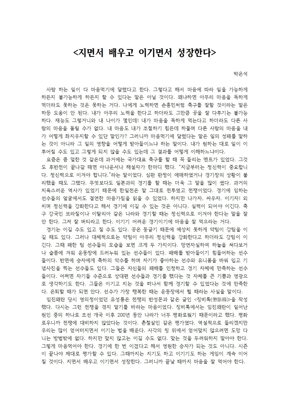 무엇보다도 일본과의 경기를 할 때는 더욱 그 말을 많이 썼다.