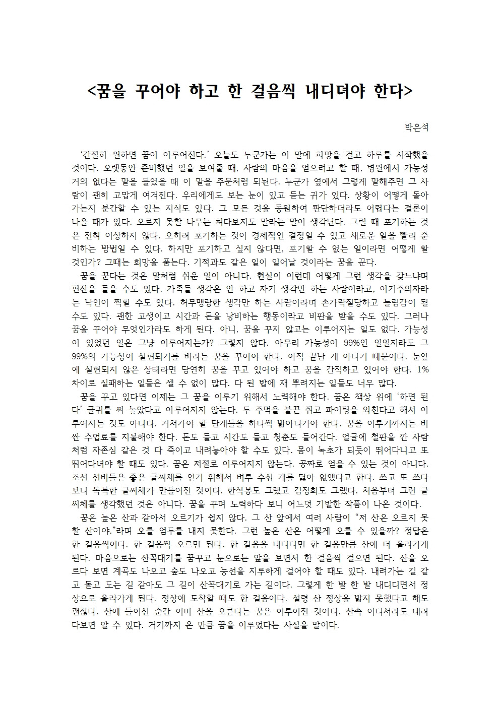 꿈을 꾸어야 하고 한 걸음씩 내디뎌야 한다