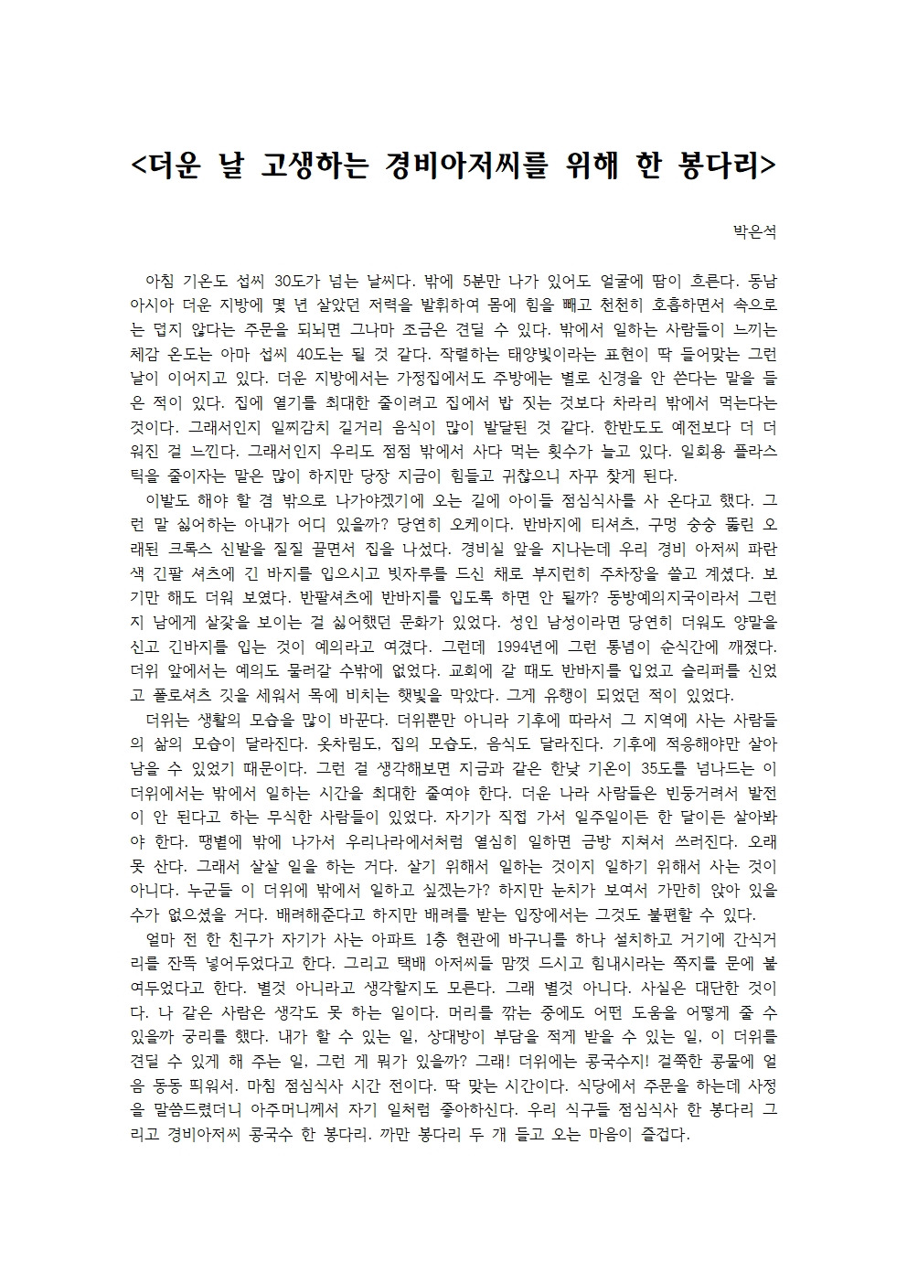 더운 날 고생하는 경비아저씨를 위해 한봉다리
