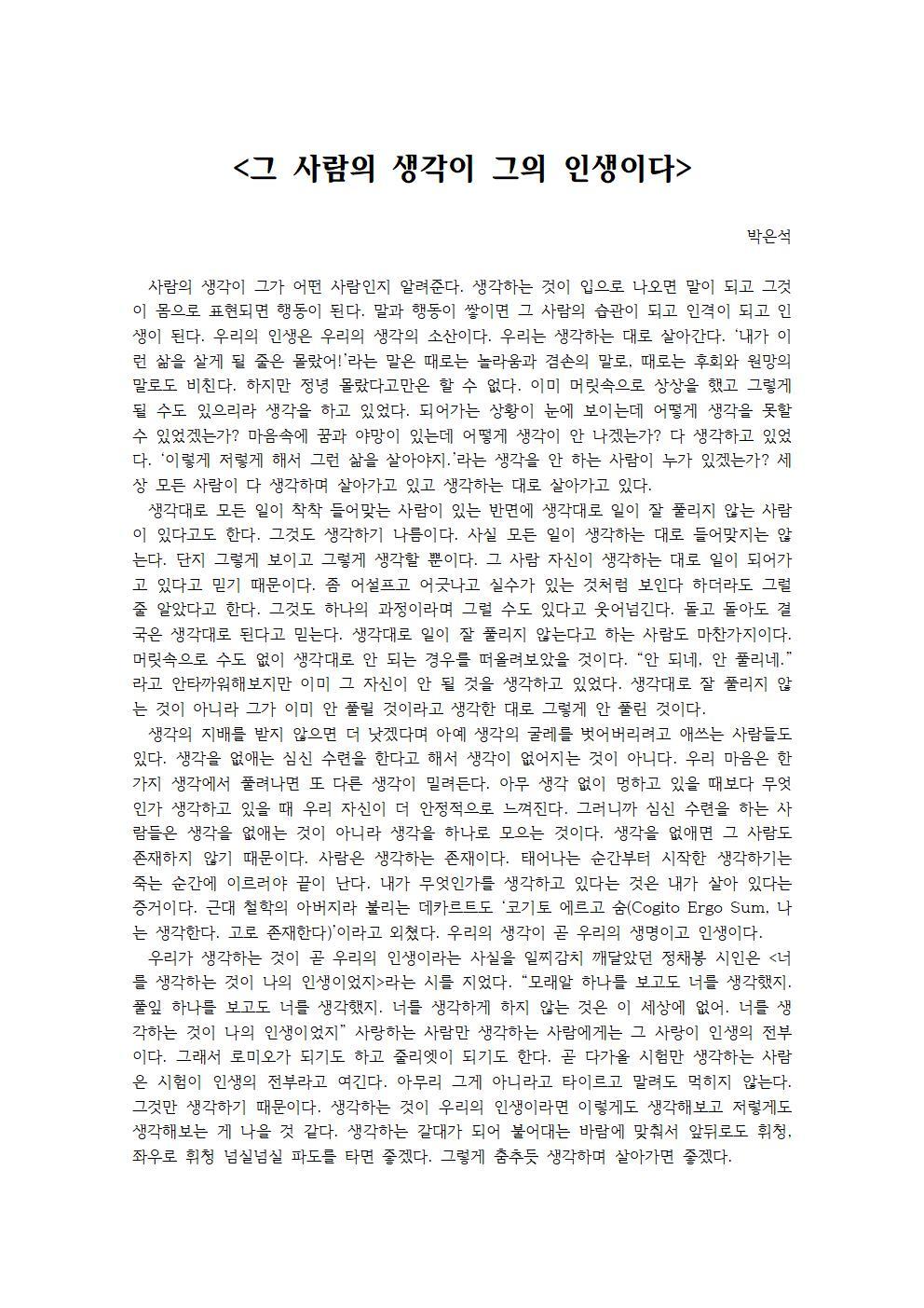 그 사람의 생각이 그의 인생이다