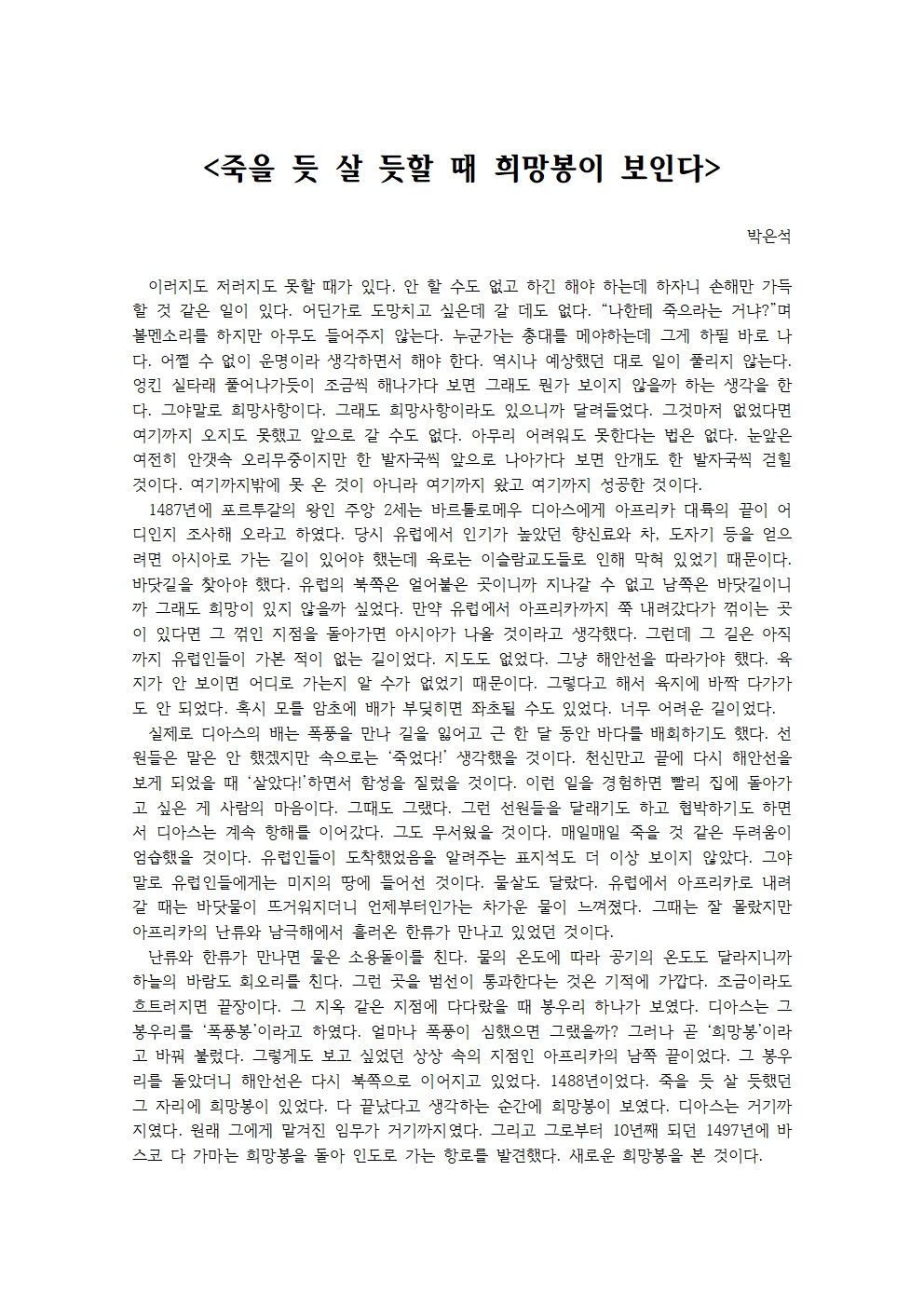 죽을 듯 살 듯했던 그 자리에 희망봉이 있었다.