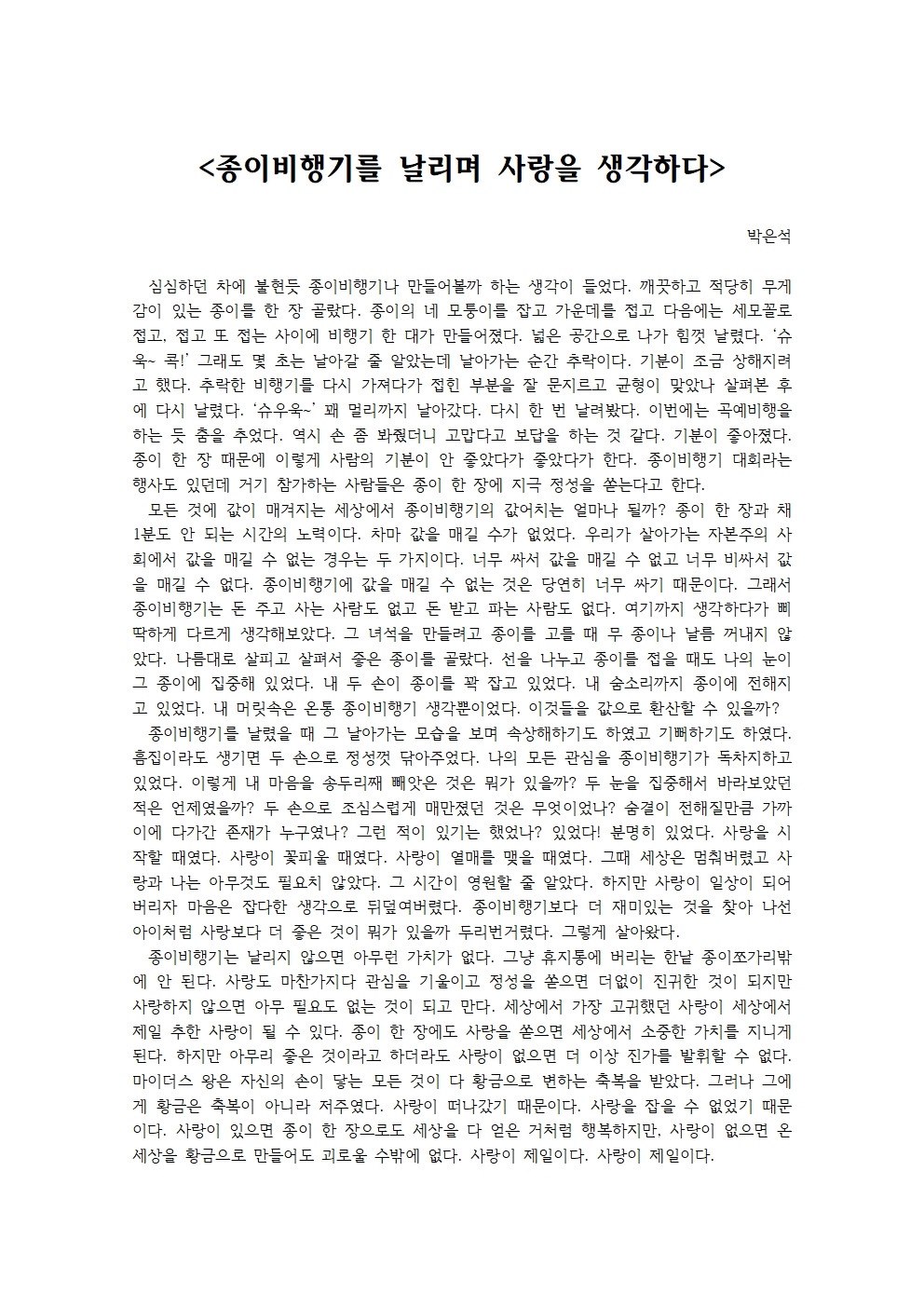 그래서 종이비행기는 돈 주고 사는 사람도 없고 돈 받고 파는 사람도 없다.