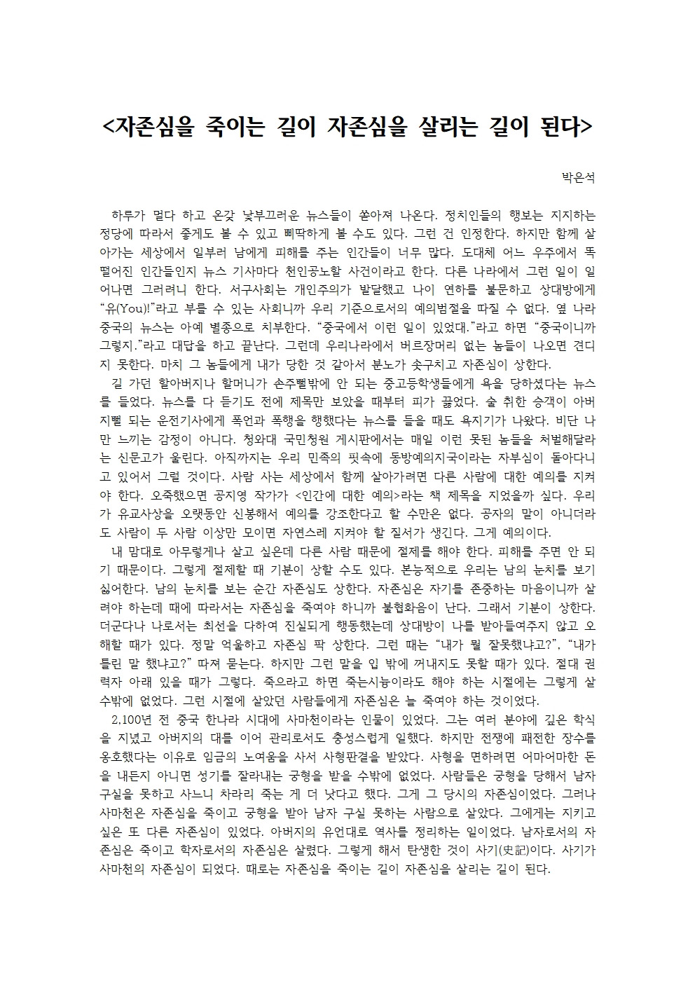 자존심을 죽이는 길이 자존심을 살리는 길이 된다