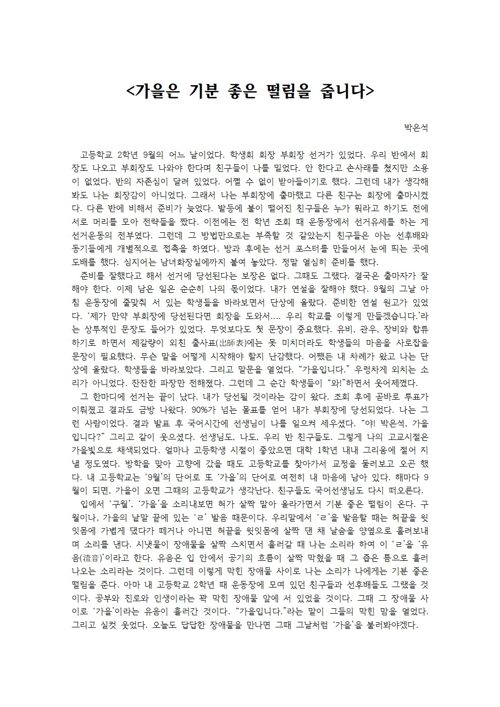 내 고등학교는 ‘9월’의 단어로 또 ‘가을’의 단어로 여전히 내 마음에 남아 있다.