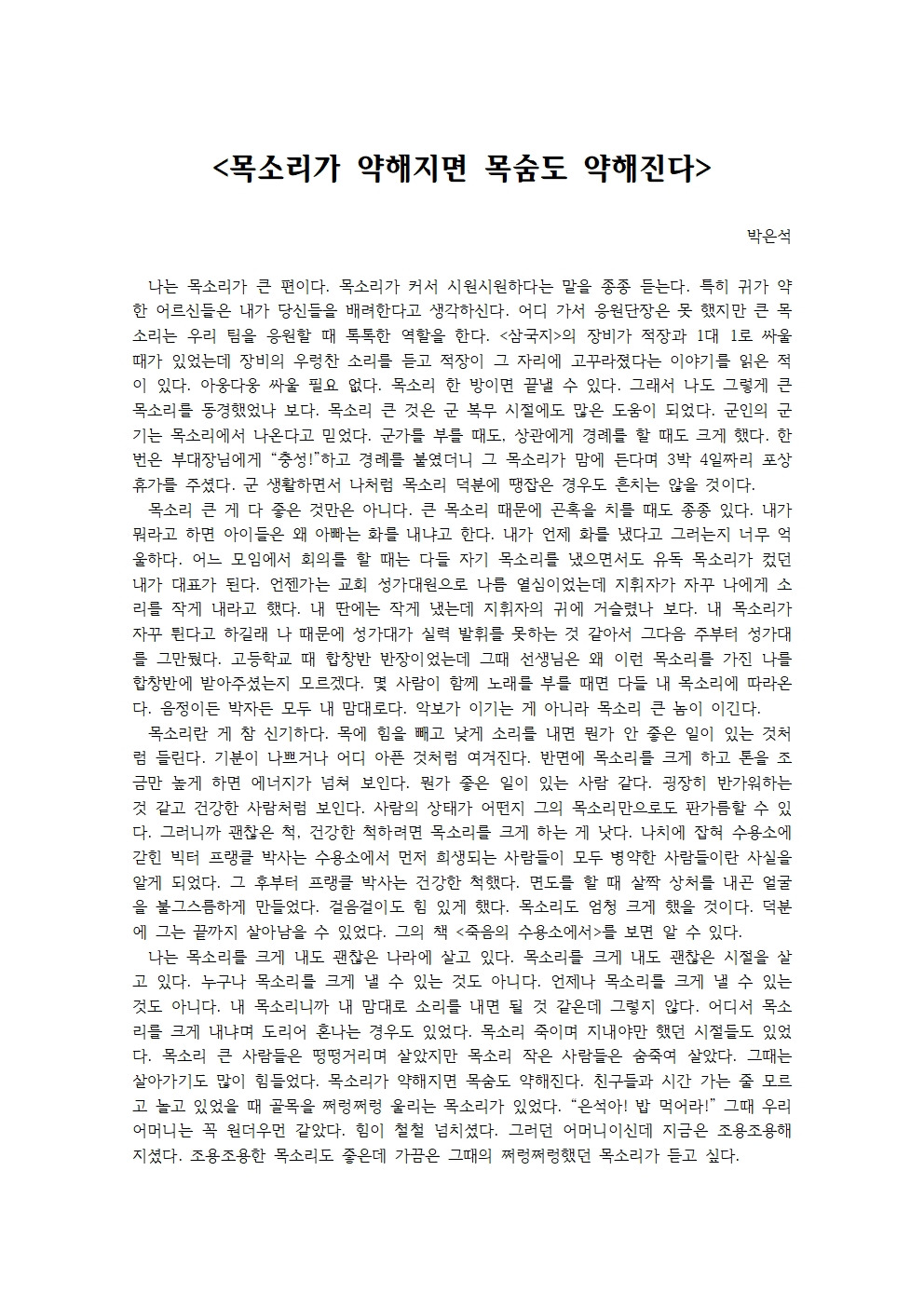 목소리가 약해지면 목숨도 약해진다.